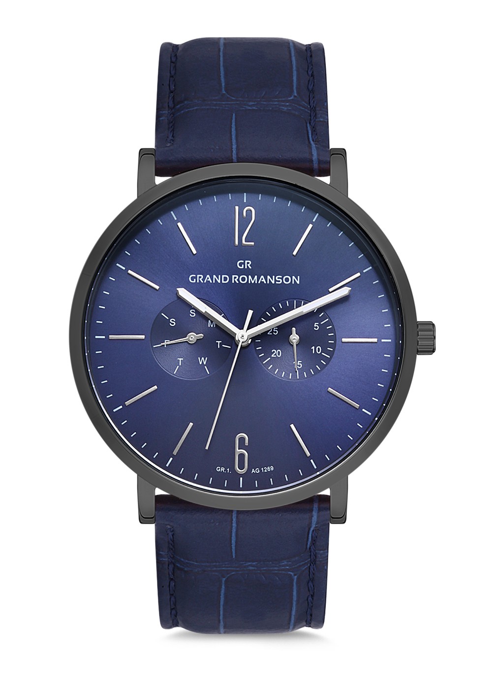 Erkek - Multi̇ Fonksi̇yon - Gun - Mavi̇ - Doğal Deri̇ Kordon - Mavi̇ - 3 Atm - Sertleşti̇ri̇lmi̇ş Mi̇neral Cam - Grand Romanson