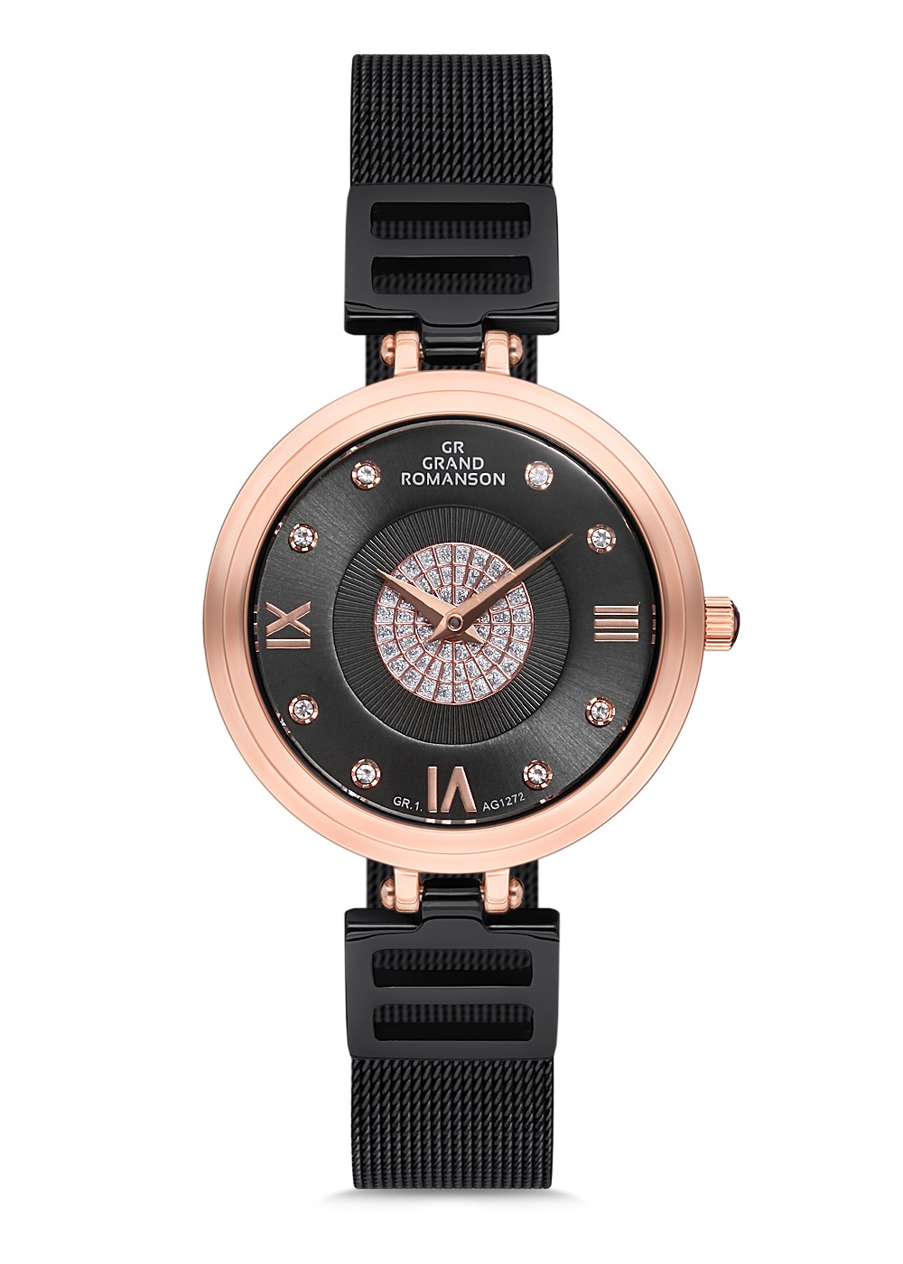 Kadın - Düz - Rose Si̇yah - Si̇yah - Çeli̇k Örme Kordon - 3 Atm - Sertleşti̇ri̇lmi̇ş Mi̇neral Cam - Grand Romanson