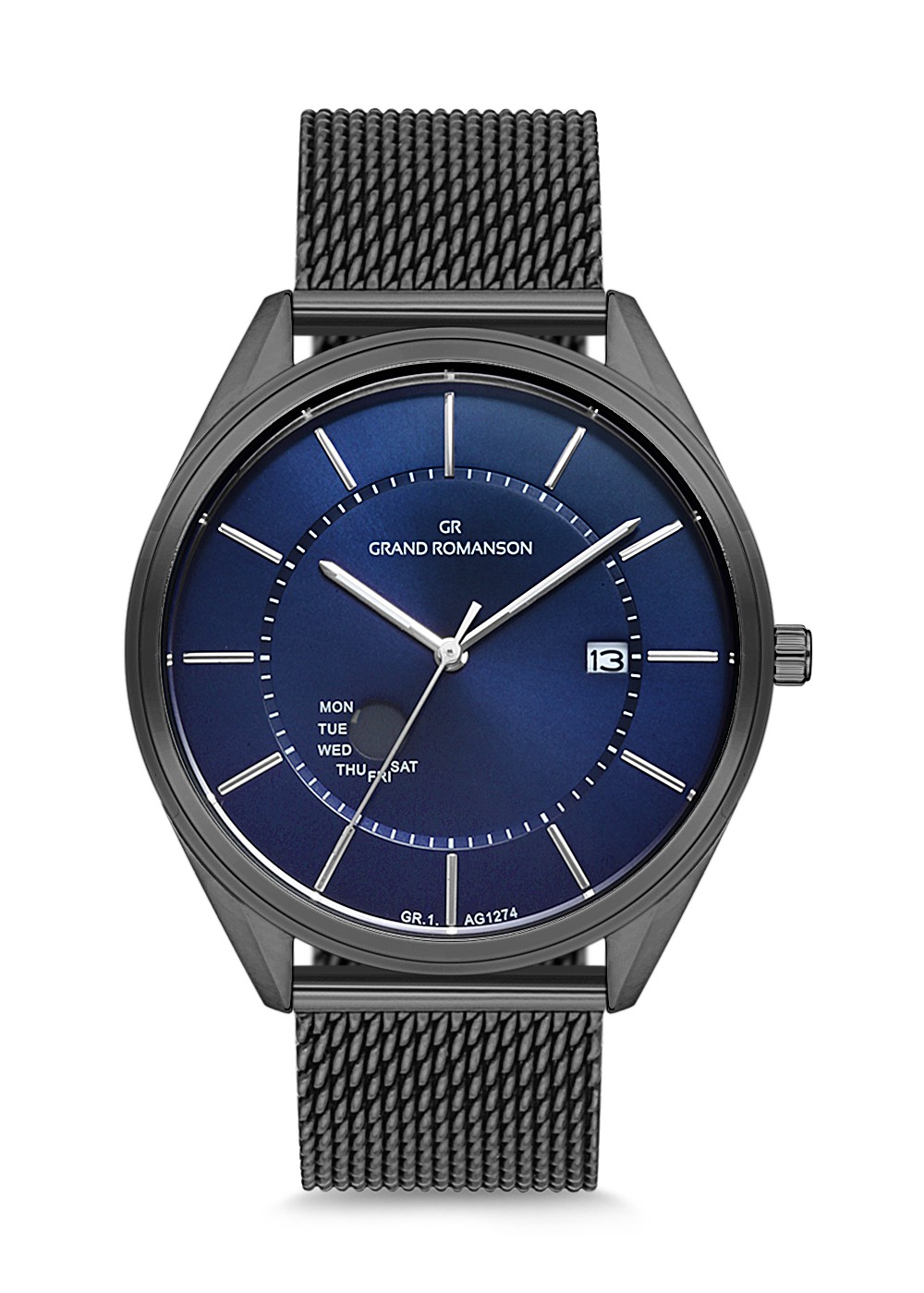 Erkek - Takvi̇mli̇ - Gun - Mavi̇ - Çeli̇k Örme Kordon - 3 Atm - Sertleşti̇ri̇lmi̇ş Mi̇neral Cam - Grand Romanson