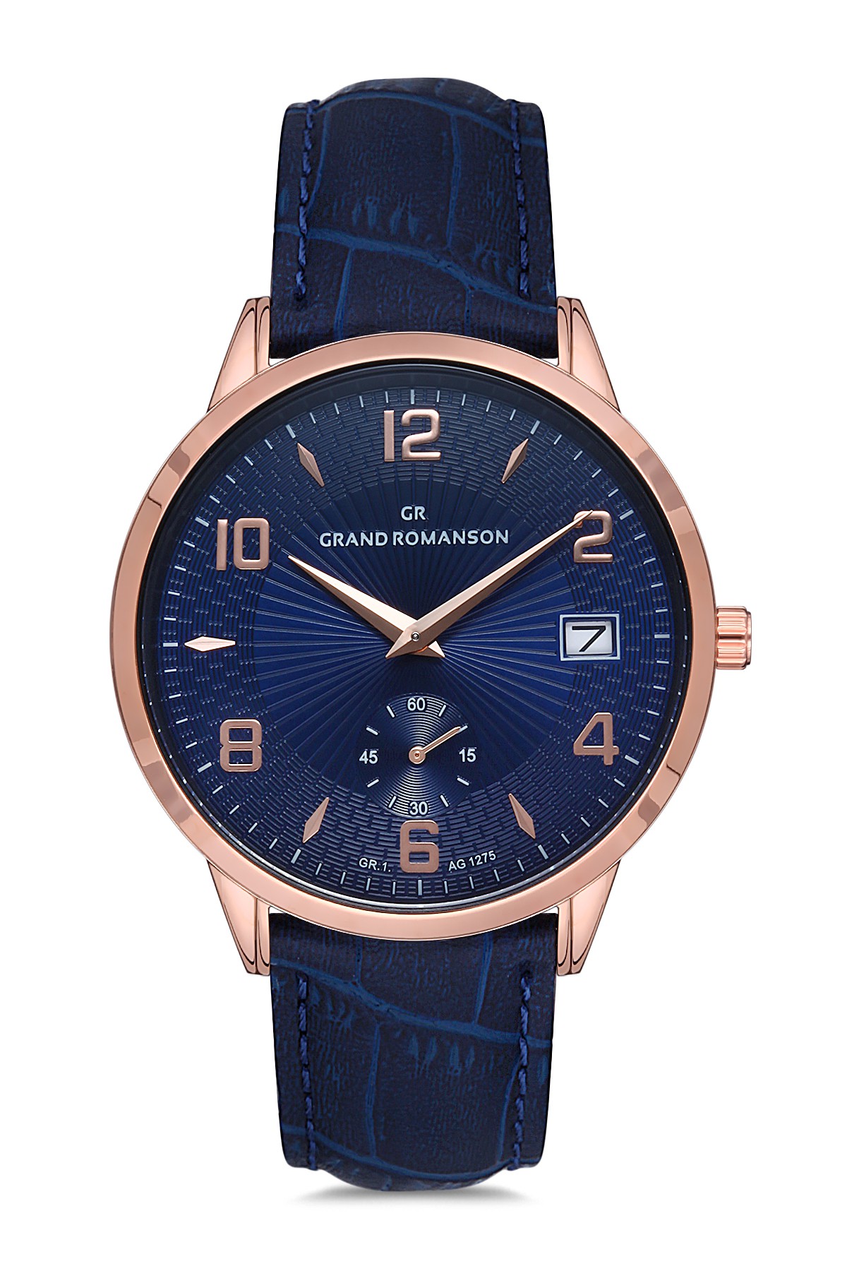 Erkek - Alttan Sani̇ye - Rose - Mavi̇ - Doğal Deri̇ Kordon - Mavi̇ - 3 Atm - Sertleşti̇ri̇lmi̇ş Mi̇neral Cam - Grand Romanson - 42