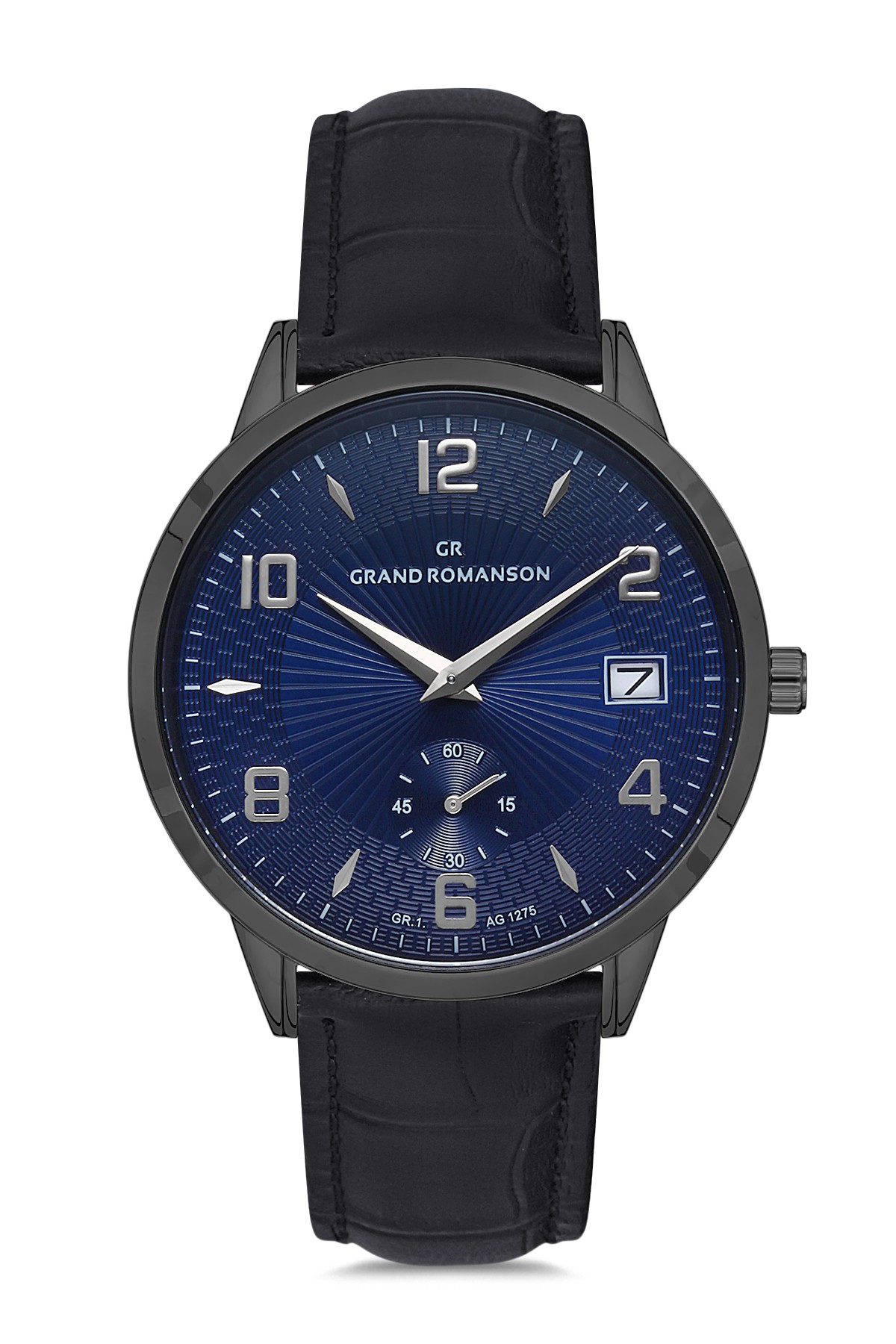 Erkek - Alttan Sani̇ye - Gun - Mavi̇ - Doğal Deri̇ Kordon - Si̇yah - 3 Atm - Sertleşti̇ri̇lmi̇ş Mi̇neral Cam - Grand Romanson - 42