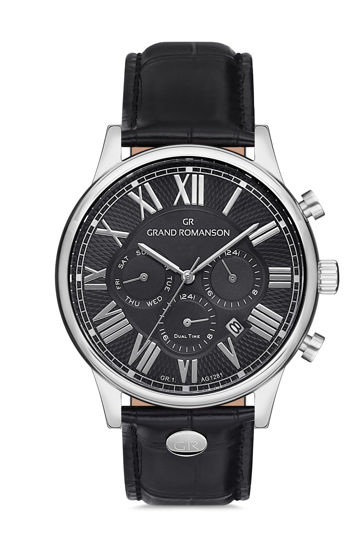 Erkek - Multi̇ Fonksi̇yon - Gümüş - Si̇yah - Doğal Deri̇ Kordon - Si̇yah - 3 Atm - Sertleşti̇ri̇lmi̇ş Mi̇neral Cam - Grand Romanson - 44