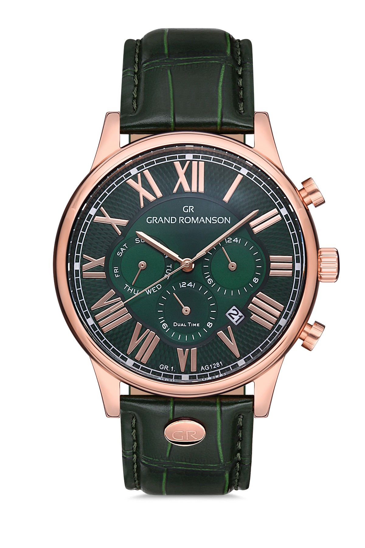 Erkek - Multi̇ Fonksi̇yon - Rose - Yeşi̇l - Doğal Deri̇ Kordon - Yeşi̇l - 3 Atm - Sertleşti̇ri̇lmi̇ş Mi̇neral Cam - Grand Romanson - 44
