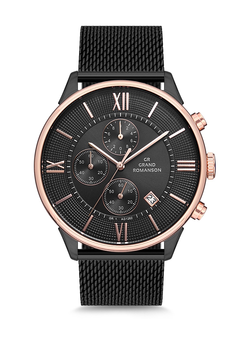 Erkek - Kronometre - Rose Si̇yah - Si̇yah - Çeli̇k Örme Kordon - 3 Atm - Sertleşti̇ri̇lmi̇ş Mi̇neral Cam - Grand Romanson
