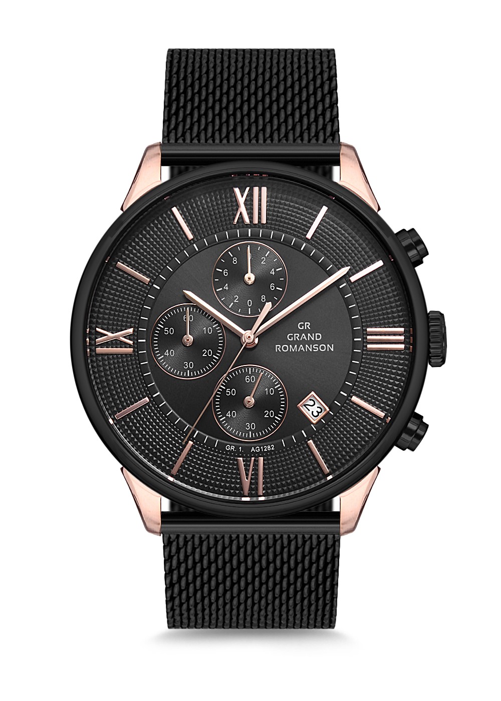 Erkek - Kronometre - Rose Si̇yah - Si̇yah - Çeli̇k Örme Kordon - 3 Atm - Sertleşti̇ri̇lmi̇ş Mi̇neral Cam - Grand Romanson