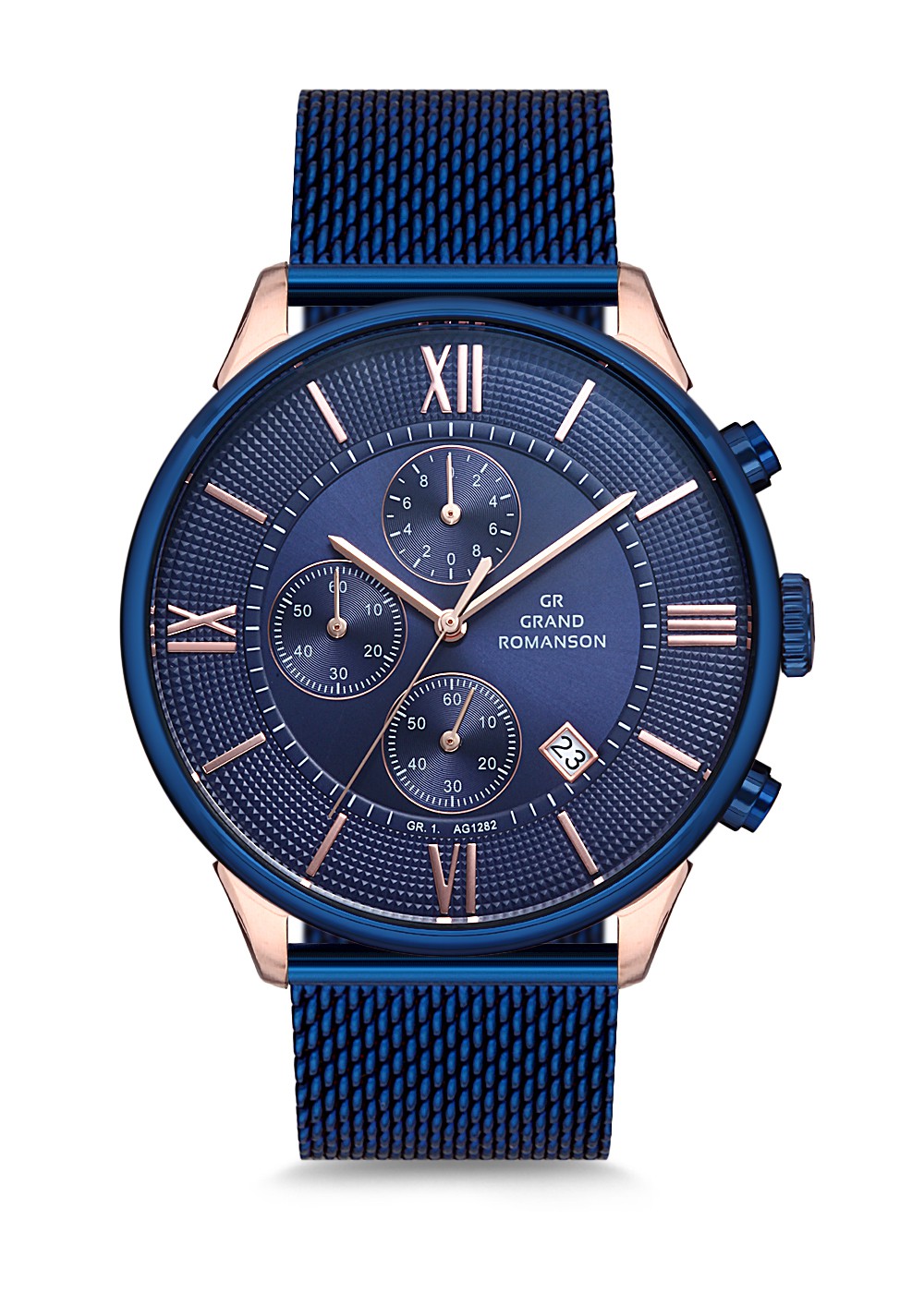 Erkek - Kronometre - Rose Mavi̇ - Mavi̇ - Çeli̇k Örme Kordon - 3 Atm - Sertleşti̇ri̇lmi̇ş Mi̇neral Cam - Grand Romanson