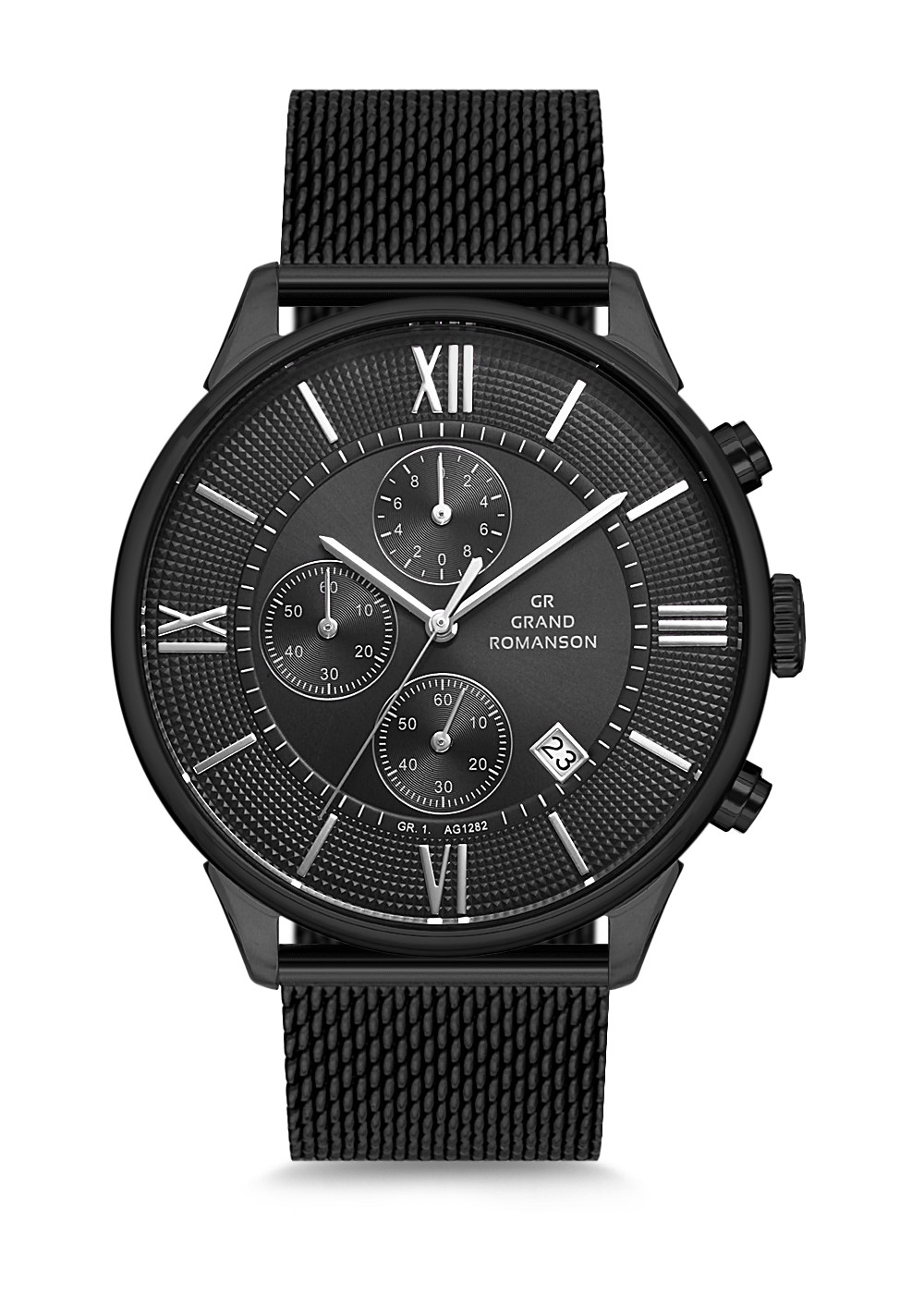 Erkek - Kronometre - Si̇yah - Si̇yah - Çeli̇k Örme Kordon - 3 Atm - Sertleşti̇ri̇lmi̇ş Mi̇neral Cam - Grand Romanson