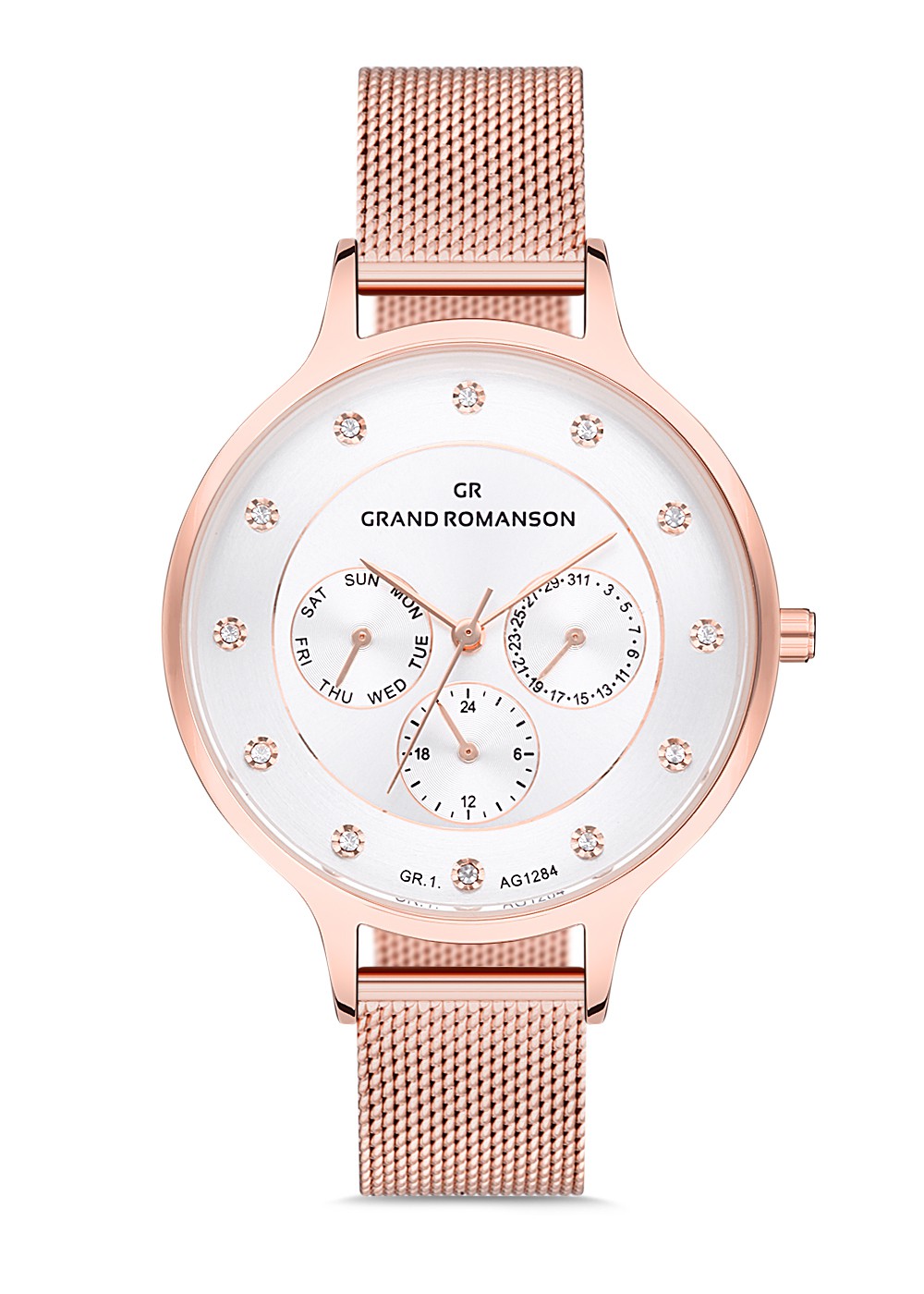 Kadın - Multi̇ Fonksi̇yon - Rose - Gümüş - Çeli̇k Örme Kordon - 3 Atm - Sertleşti̇ri̇lmi̇ş Mi̇neral Cam - Grand Romanson