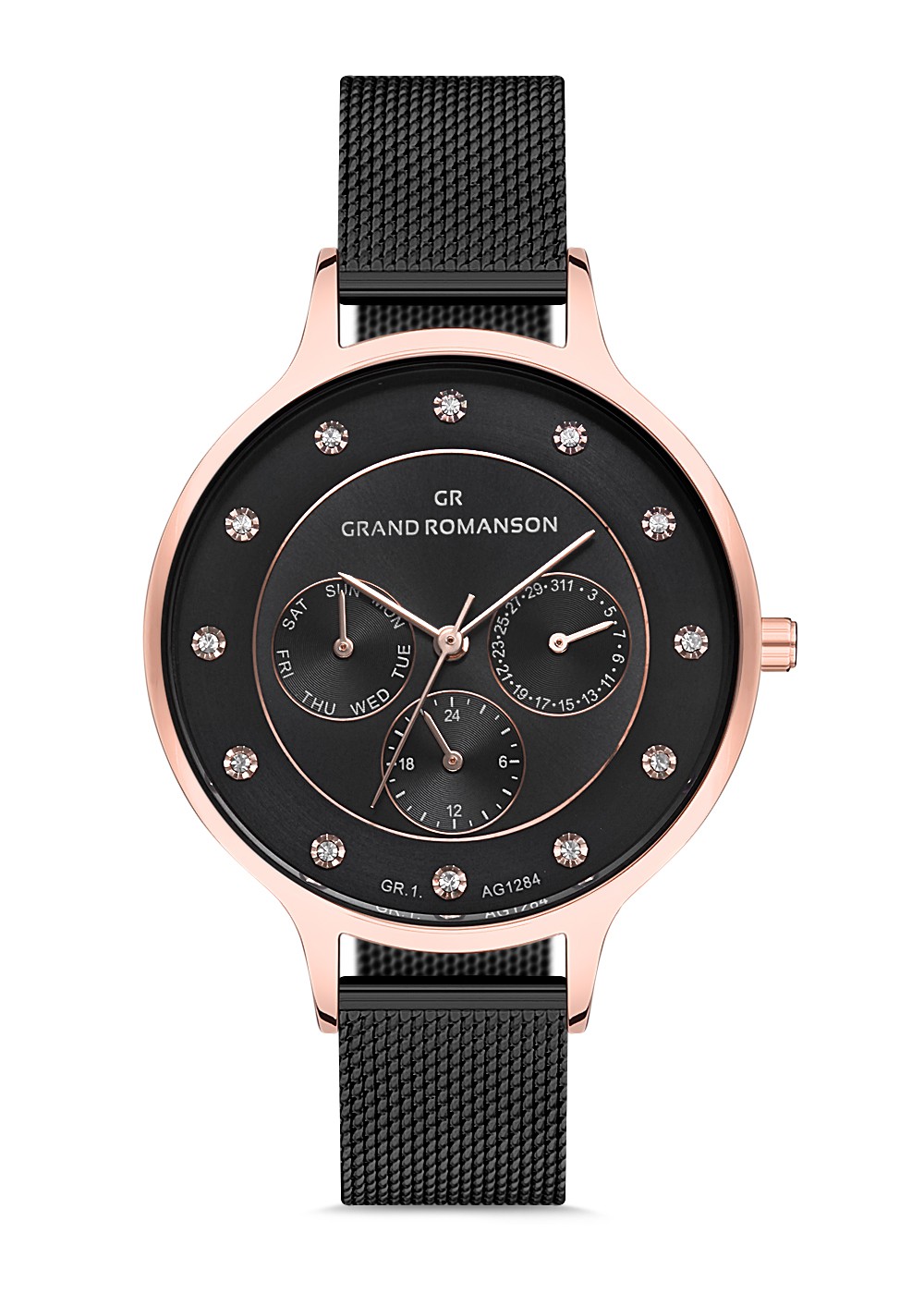 Kadın - Multi̇ Fonksi̇yon - Rose Si̇yah - Si̇yah - Çeli̇k Örme Kordon - 3 Atm - Sertleşti̇ri̇lmi̇ş Mi̇neral Cam - Grand Romanson