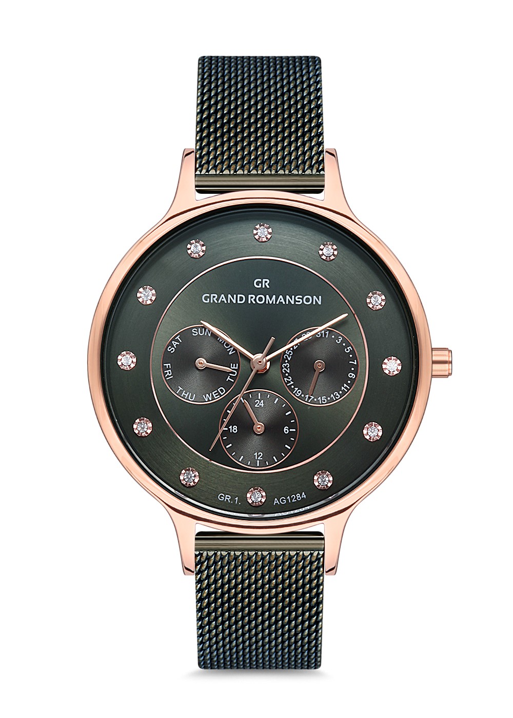 Kadın - Multi̇ Fonksi̇yon - Rose - Yeşi̇l - Çeli̇k Örme Kordon - 3 Atm - Sertleşti̇ri̇lmi̇ş Mi̇neral Cam - Grand Romanson
