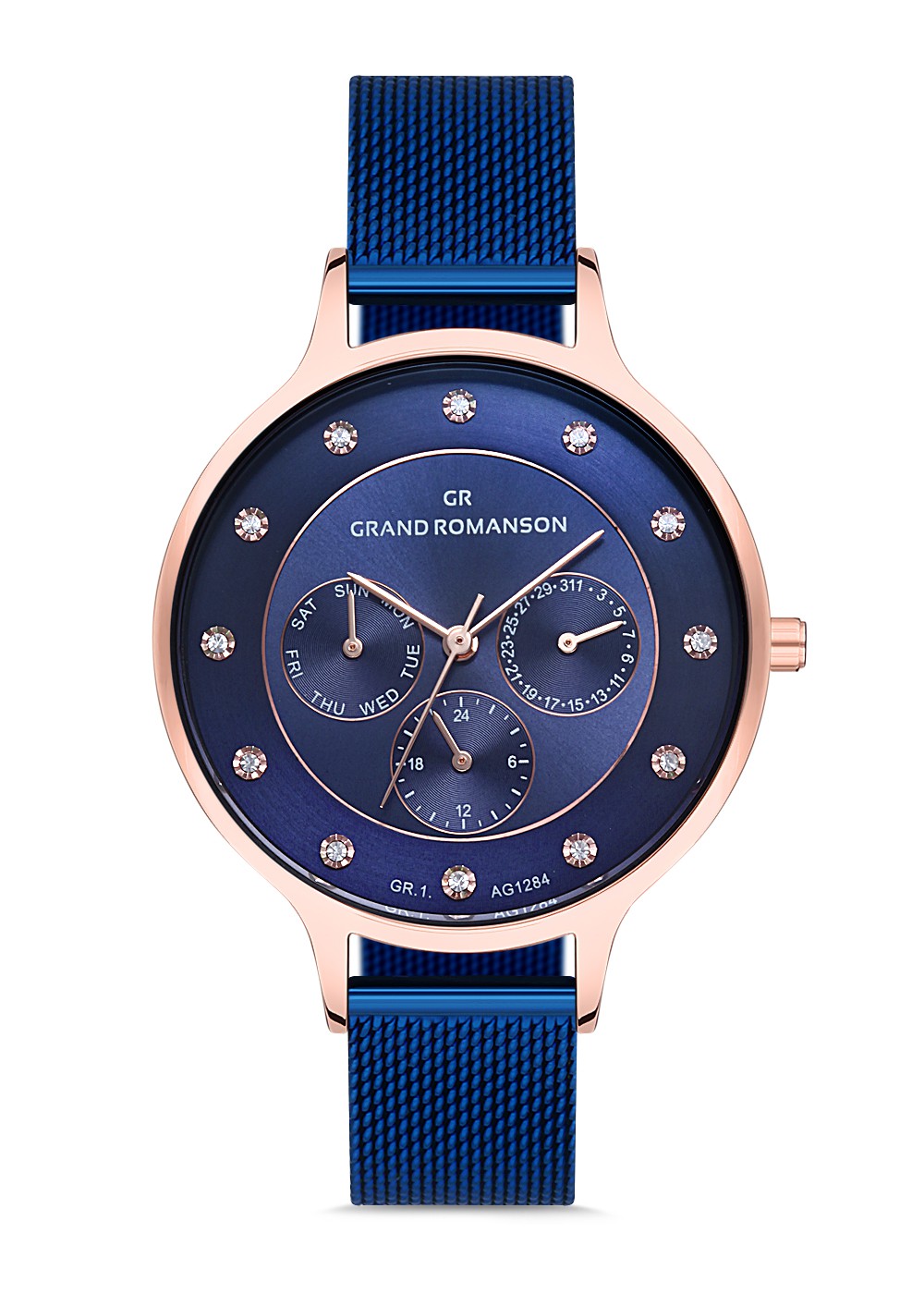 Kadın - Multi̇ Fonksi̇yon - Rose Mavi̇ - Mavi̇ - Çeli̇k Örme Kordon - 3 Atm - Sertleşti̇ri̇lmi̇ş Mi̇neral Cam - Grand Romanson