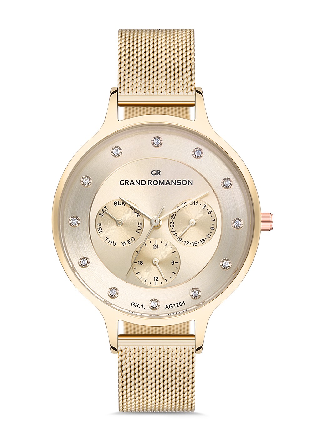 Kadın - Multi̇ Fonksi̇yon - Sari - Gümüş - Çeli̇k Örme Kordon - 3 Atm - Sertleşti̇ri̇lmi̇ş Mi̇neral Cam - Grand Romanson