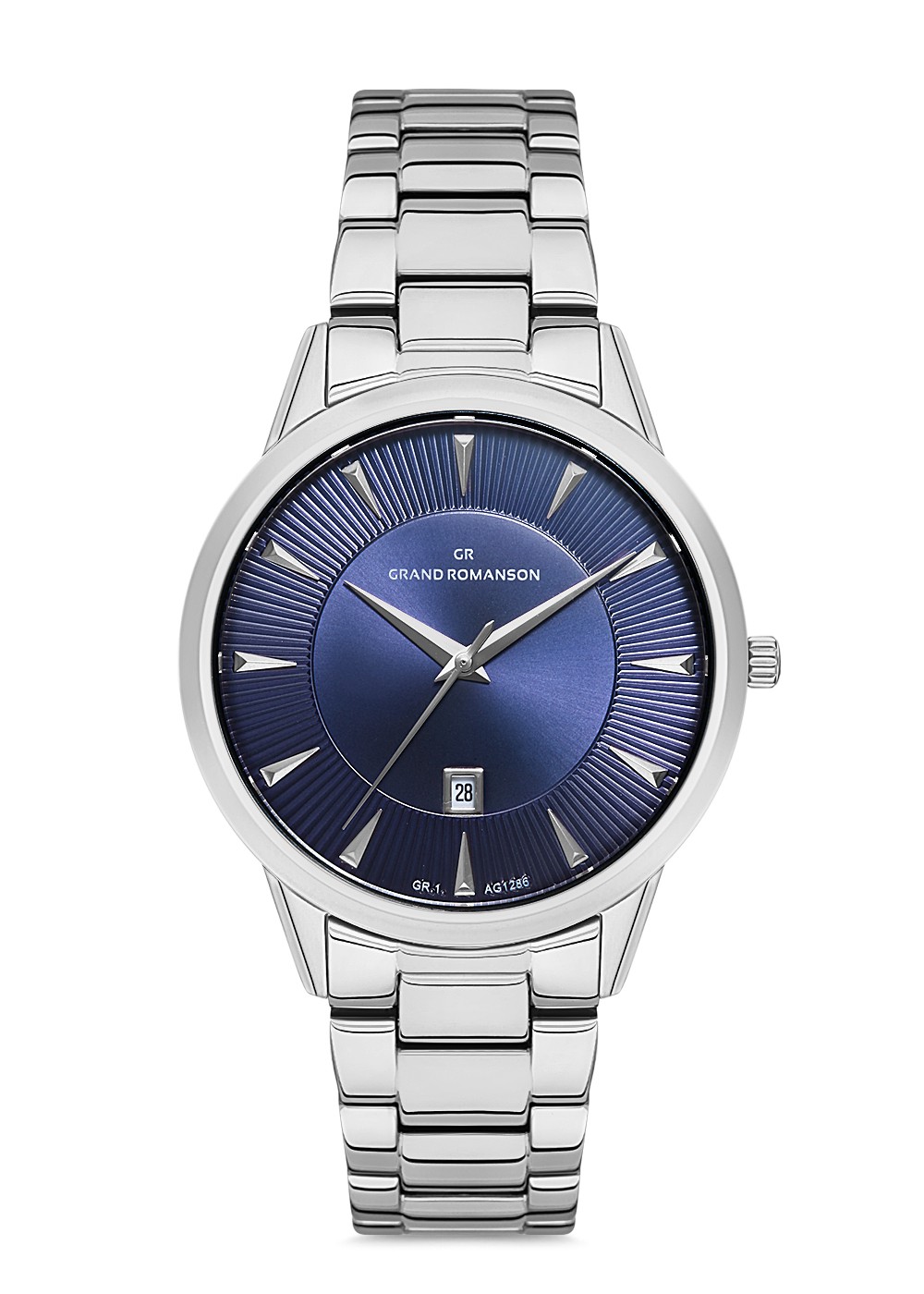 Erkek - Takvi̇mli̇ - Gümüş - Mavi̇ - Paslanmaz Masi̇f Çeli̇k - 3 Atm - Sertleşti̇ri̇lmi̇ş Mi̇neral Cam - Grand Romanson
