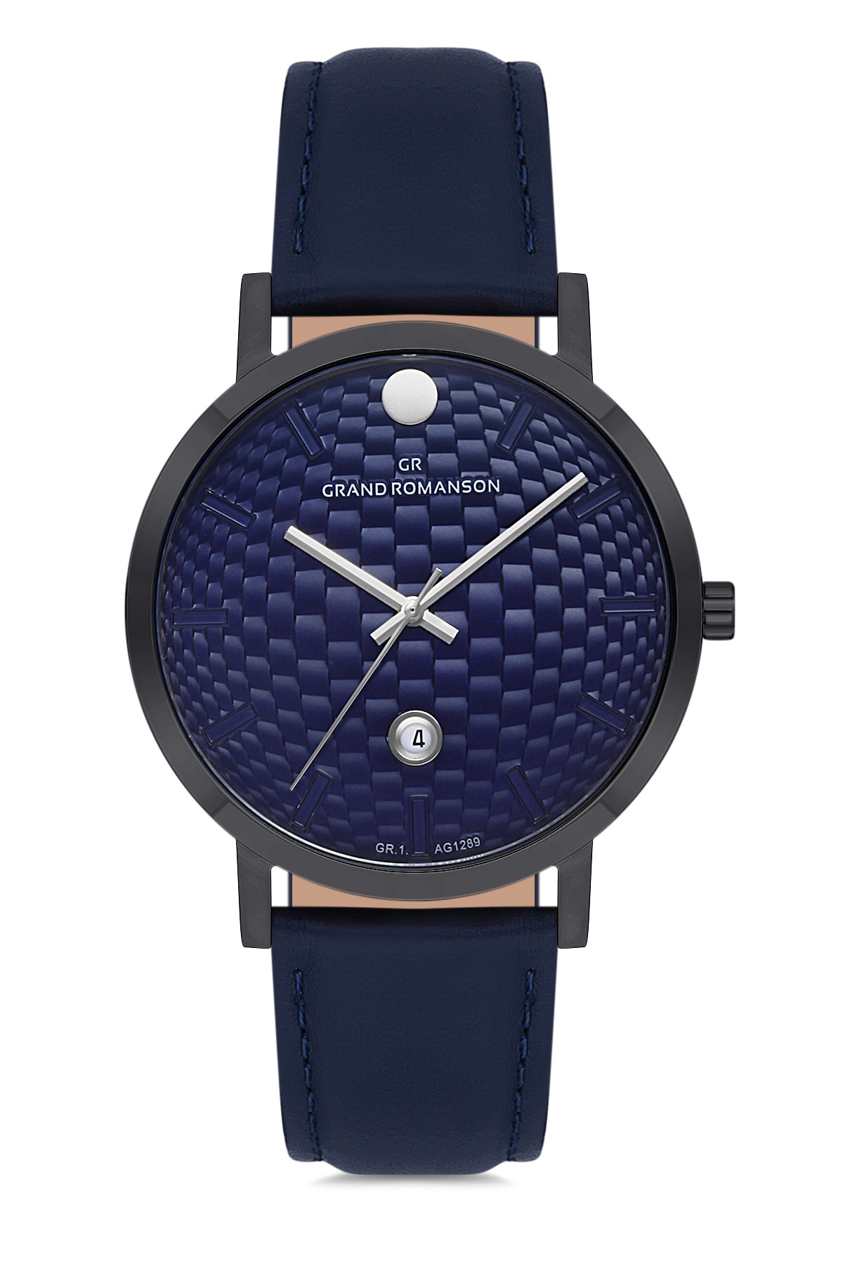 Erkek - Düz - Gun - Mavi̇ - Doğal Deri̇ Kordon - Mavi̇ - 3 Atm - Sertleşti̇ri̇lmi̇ş Mi̇neral Cam - Grand Romanson - 42