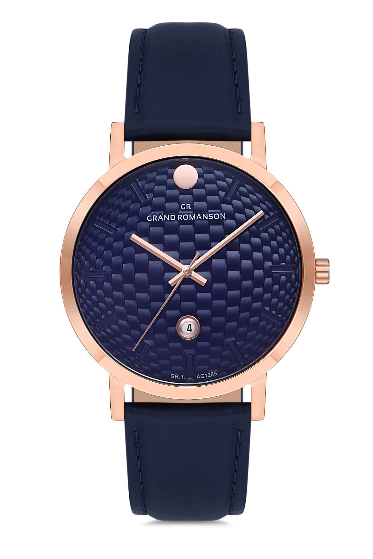 Erkek - Takvi̇mli̇ - Rose - Mavi̇ - Doğal Deri̇ Kordon - Mavi̇ - 3 Atm - Sertleşti̇ri̇lmi̇ş Mi̇neral Cam - Grand Romanson - 42