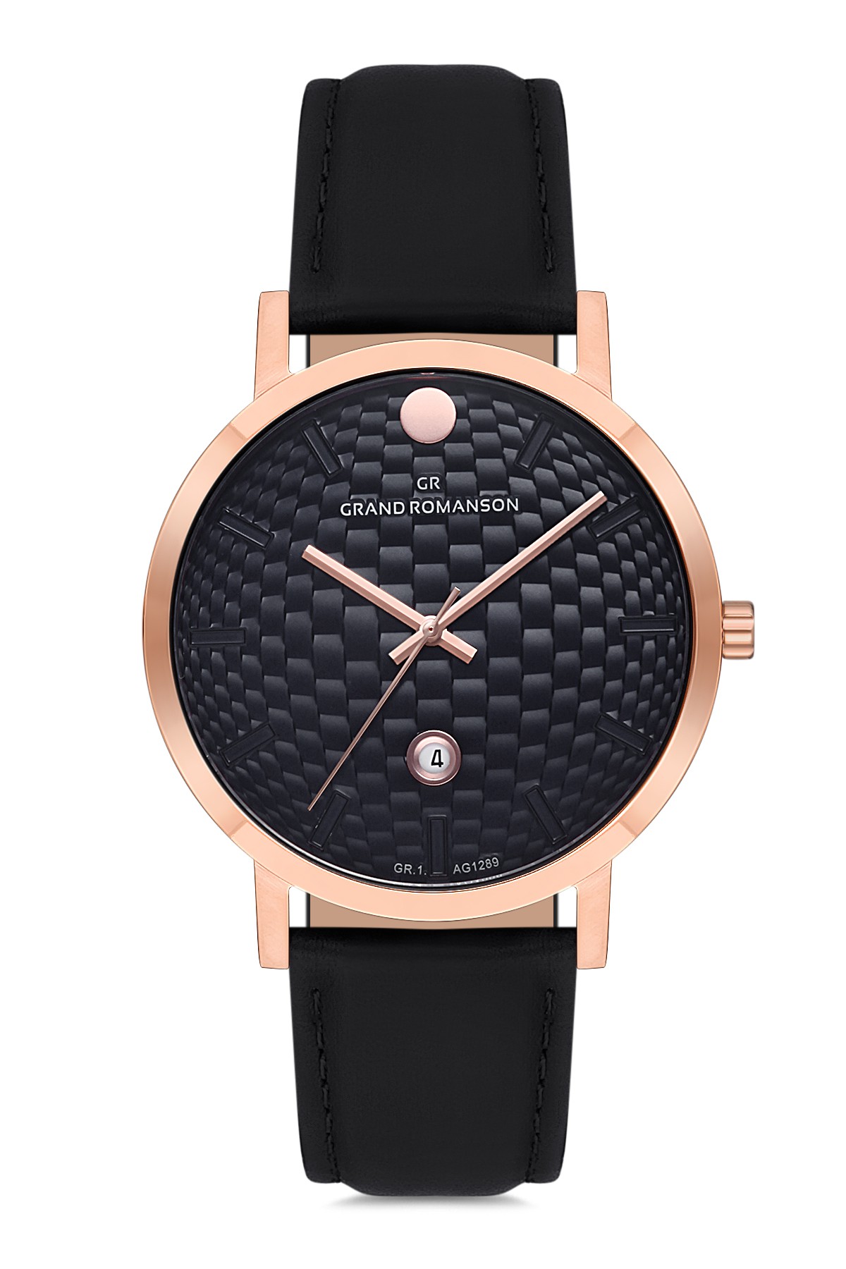 Erkek - Takvi̇mli̇ - Rose - Si̇yah - Doğal Deri̇ Kordon - Si̇yah - 3 Atm - Sertleşti̇ri̇lmi̇ş Mi̇neral Cam - Grand Romanson - 42