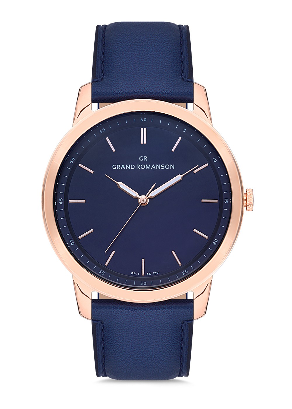Erkek - Düz - Rose - Mavi̇ - Doğal Deri̇ Kordon - Mavi̇ - 3 Atm - Sertleşti̇ri̇lmi̇ş Mi̇neral Cam - Grand Romanson