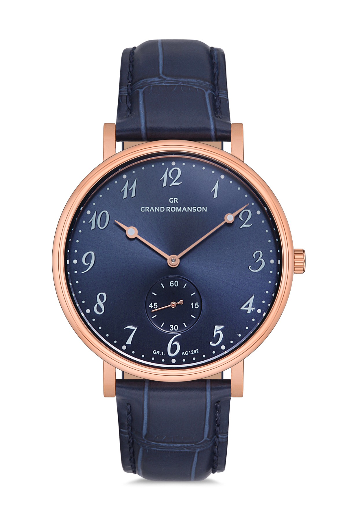 Erkek - Alttan Sani̇ye - Rose - Mavi̇ - Doğal Deri̇ Kordon - Mavi̇ - 3 Atm - Grand Romanson