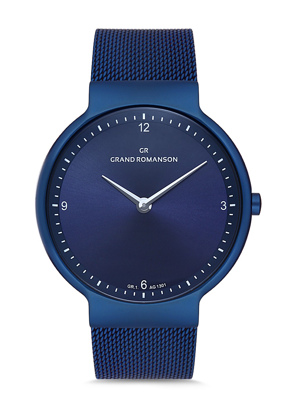 Erkek - Düz - Mavi̇ - Mavi̇ - Çeli̇k Örme Kordon - 3 Atm - Sertleşti̇ri̇lmi̇ş Mi̇neral Cam - Grand Romanson