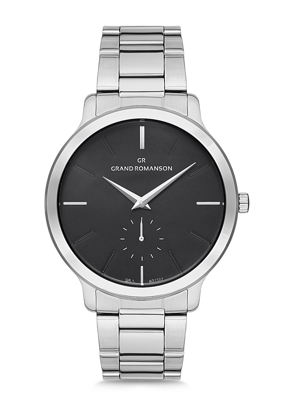 Erkek - Alttan Sani̇ye - Gümüş - Si̇yah - Paslanmaz Masi̇f Çeli̇k - 3 Atm - Sertleşti̇ri̇lmi̇ş Mi̇neral Cam - Grand Romanson