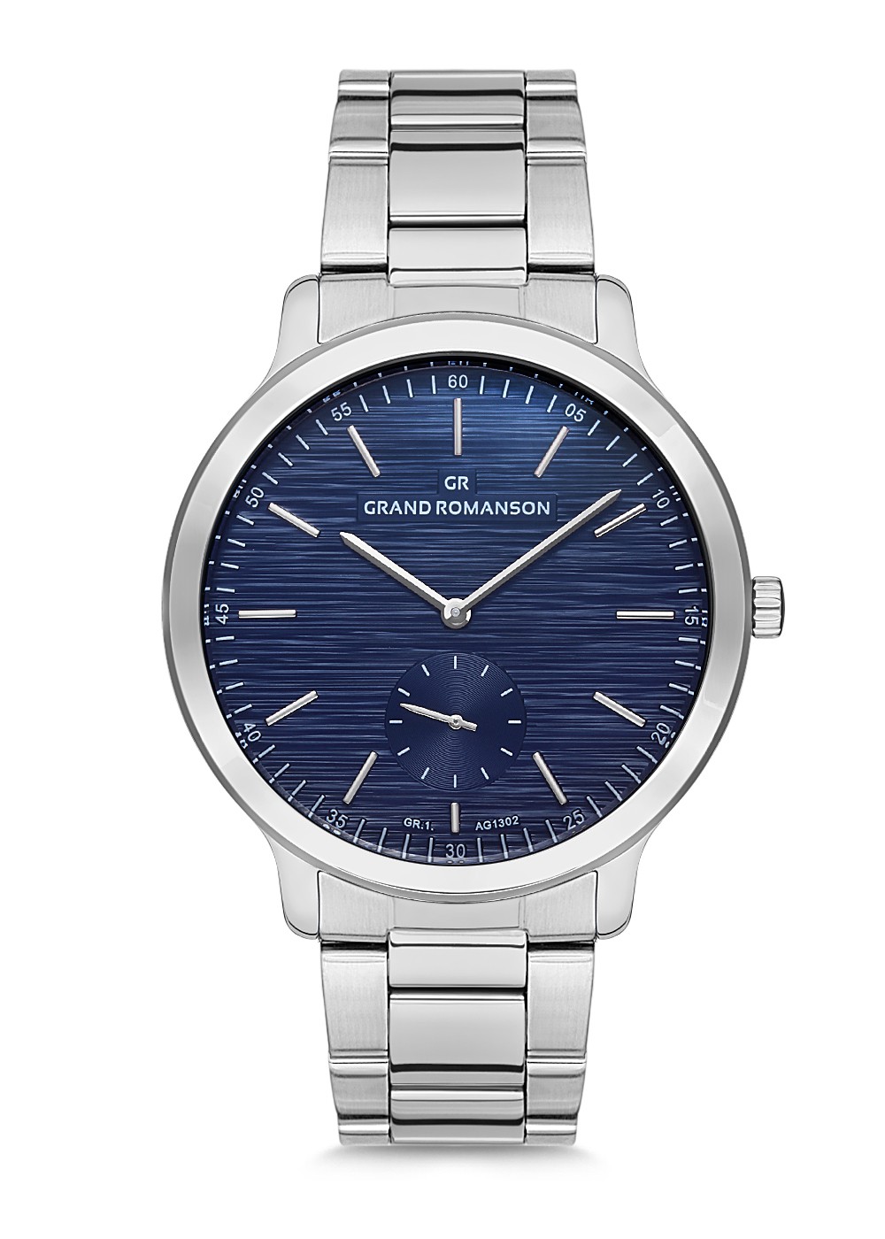 Erkek - Alttan Sani̇ye - Gümüş - Mavi̇ - Paslanmaz Masi̇f Çeli̇k - 3 Atm - Sertleşti̇ri̇lmi̇ş Mi̇neral Cam - Grand Romanson