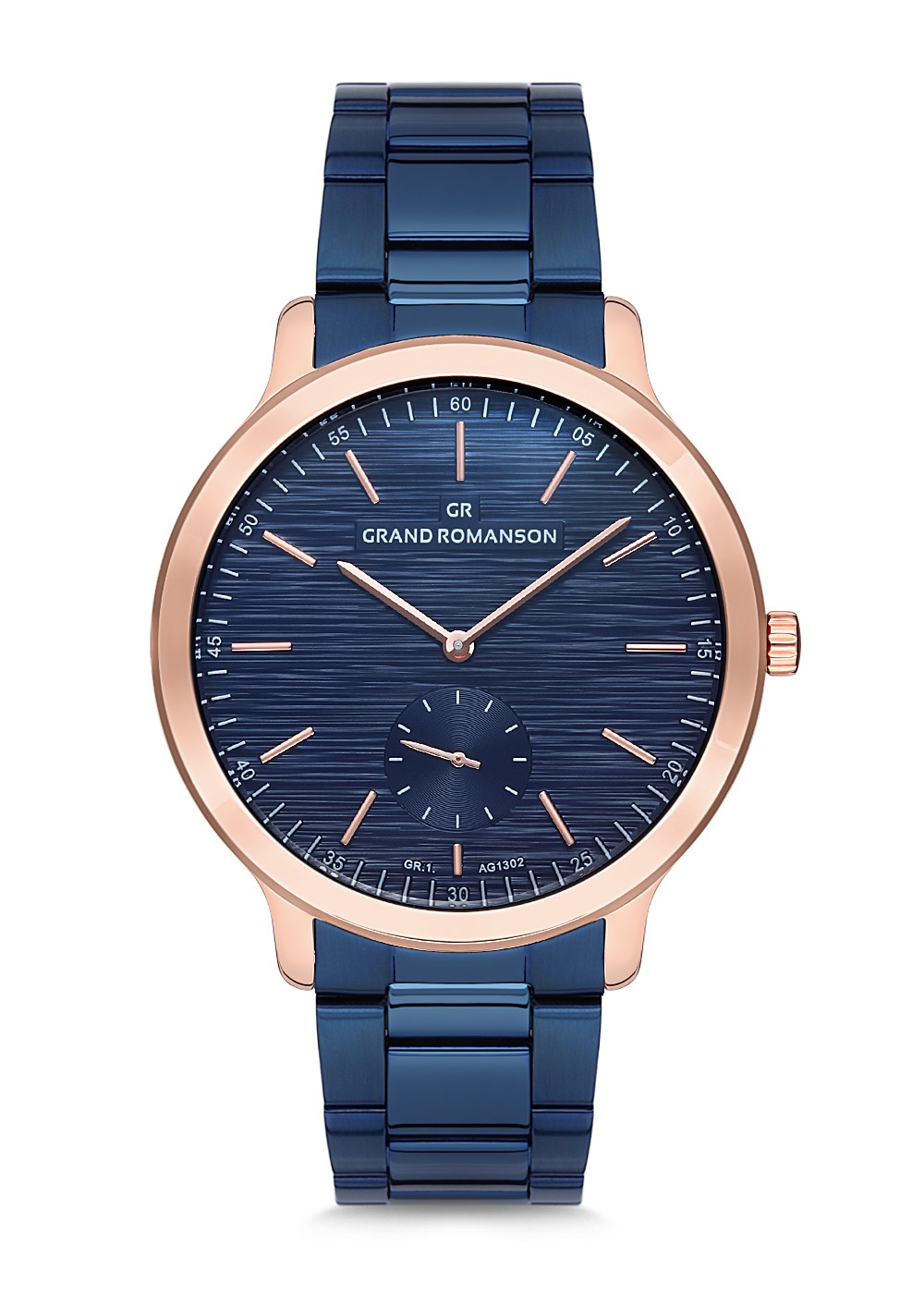 Erkek - Alttan Sani̇ye - Rose Mavi̇ - Mavi̇ - Paslanmaz Masi̇f Çeli̇k - 3 Atm - Sertleşti̇ri̇lmi̇ş Mi̇neral Cam - Grand Romanson