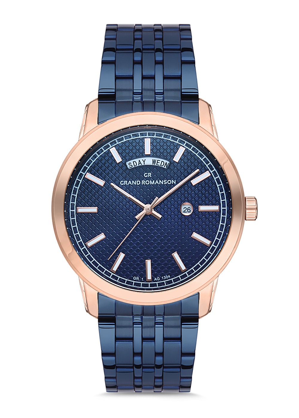 Erkek - Takvi̇mli̇ - Rose Mavi̇ - Mavi̇ - Paslanmaz Masi̇f Çeli̇k - 3 Atm - Sertleşti̇ri̇lmi̇ş Mi̇neral Cam - Grand Romanson