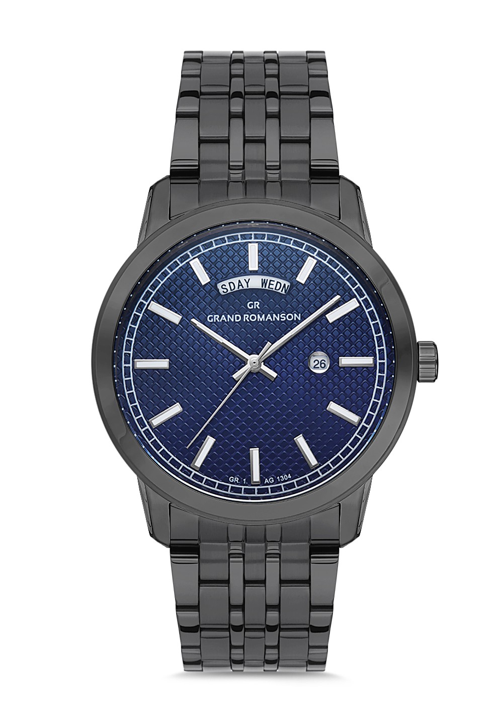 Erkek - Takvi̇mli̇ - Gun - Mavi̇ - Paslanmaz Masi̇f Çeli̇k - 3 Atm - Sertleşti̇ri̇lmi̇ş Mi̇neral Cam - Grand Romanson