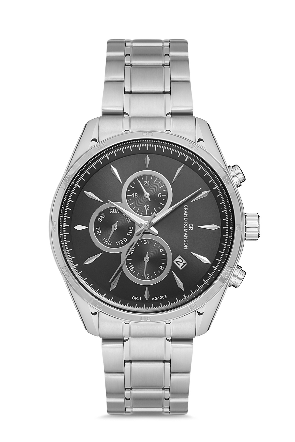 Erkek - Multi̇ Fonksi̇yon - Gümüş - Si̇yah - Paslanmaz Masi̇f Çeli̇k - 3 Atm - Sertleşti̇ri̇lmi̇ş Mi̇neral Cam - Grand Romanson
