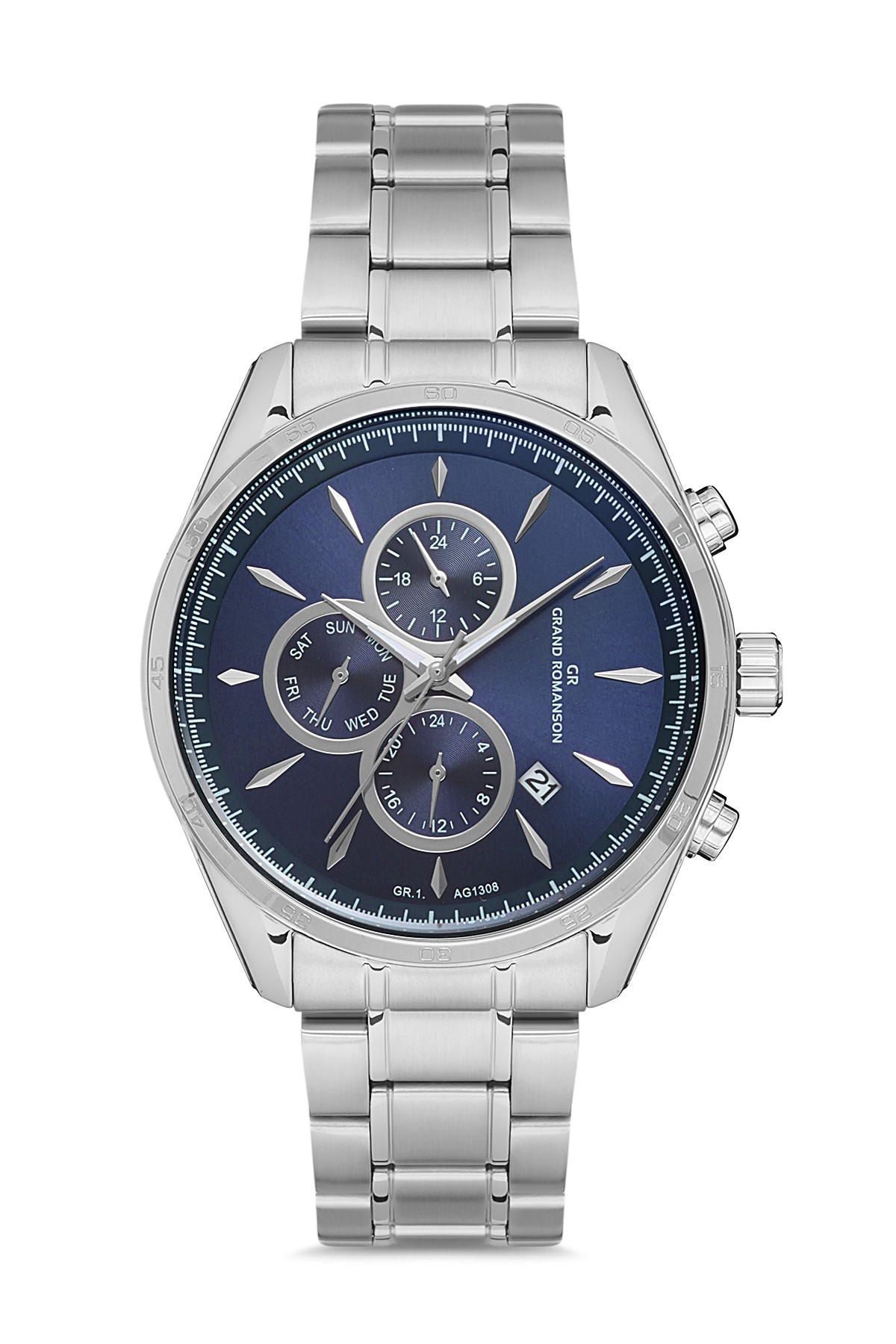 Erkek - Multi̇ Fonksi̇yon - Gümüş - Mavi̇ - Paslanmaz Masi̇f Çeli̇k - 3 Atm - Sertleşti̇ri̇lmi̇ş Mi̇neral Cam - Grand Romanson