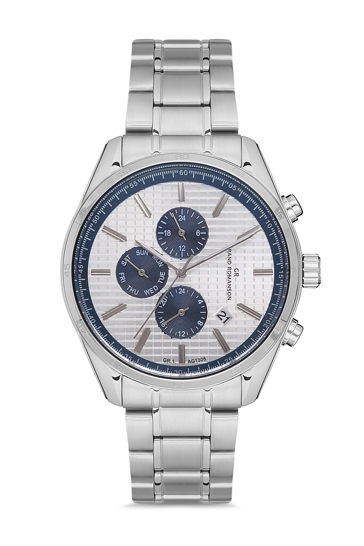 Erkek - Multi̇ Fonksi̇yon - Gümüş - Mavi̇ - Paslanmaz Masi̇f Çeli̇k - 3 Atm - Sertleşti̇ri̇lmi̇ş Mi̇neral Cam - Grand Romanson