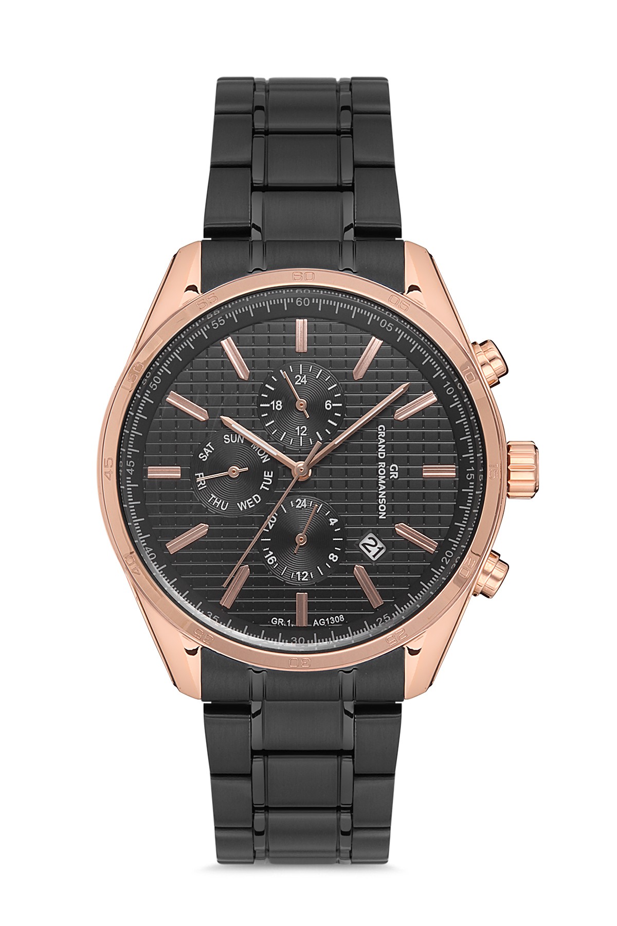 Erkek - Multi̇ Fonksi̇yon - Rose Si̇yah - Si̇yah - Paslanmaz Masi̇f Çeli̇k - 3 Atm - Sertleşti̇ri̇lmi̇ş Mi̇neral Cam - Grand Romanson