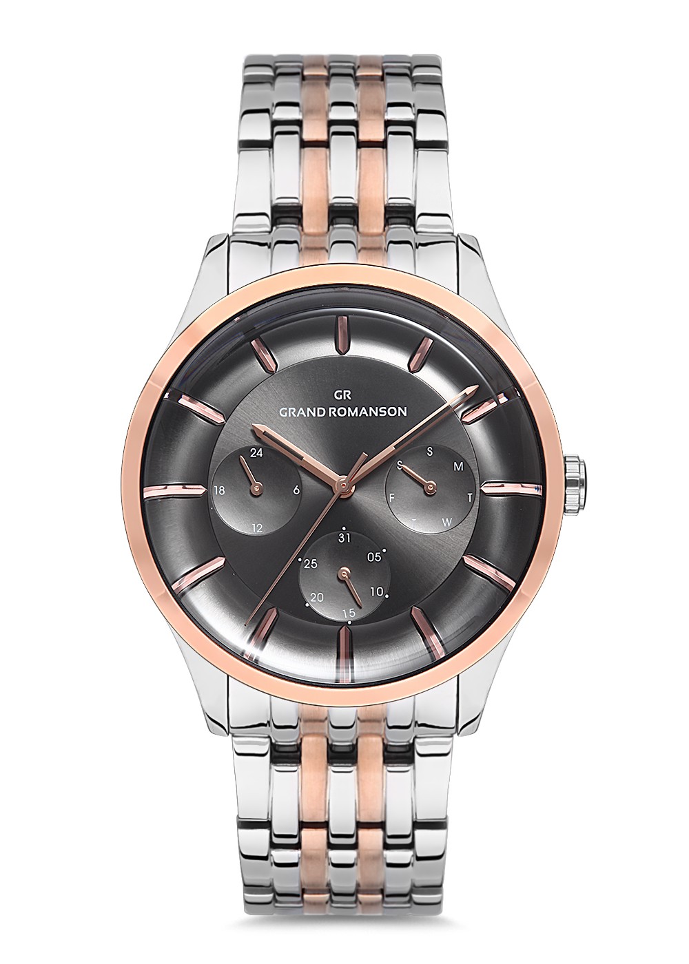 Erkek - Multi̇ Fonksi̇yon - Rose Beyaz - Si̇yah - Paslanmaz Masi̇f Çeli̇k - 3 Atm - Sertleşti̇ri̇lmi̇ş Mi̇neral Cam - Grand Romanson - 42