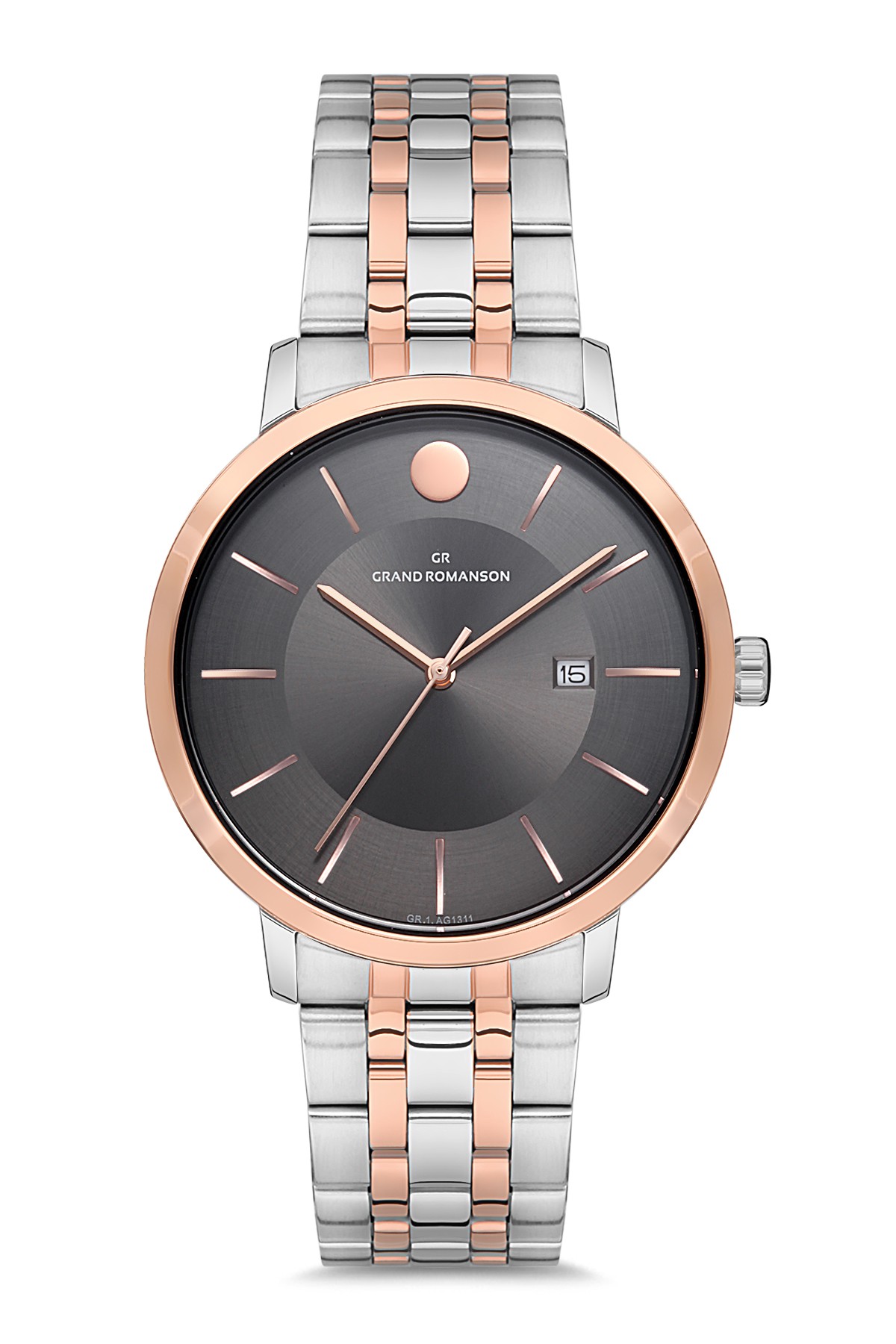 Erkek - Takvi̇mli̇ - Rose Beyaz - Gri̇ - Paslanmaz Masi̇f Çeli̇k - 3 Atm - Sertleşti̇ri̇lmi̇ş Mi̇neral Cam - Grand Romanson - 42