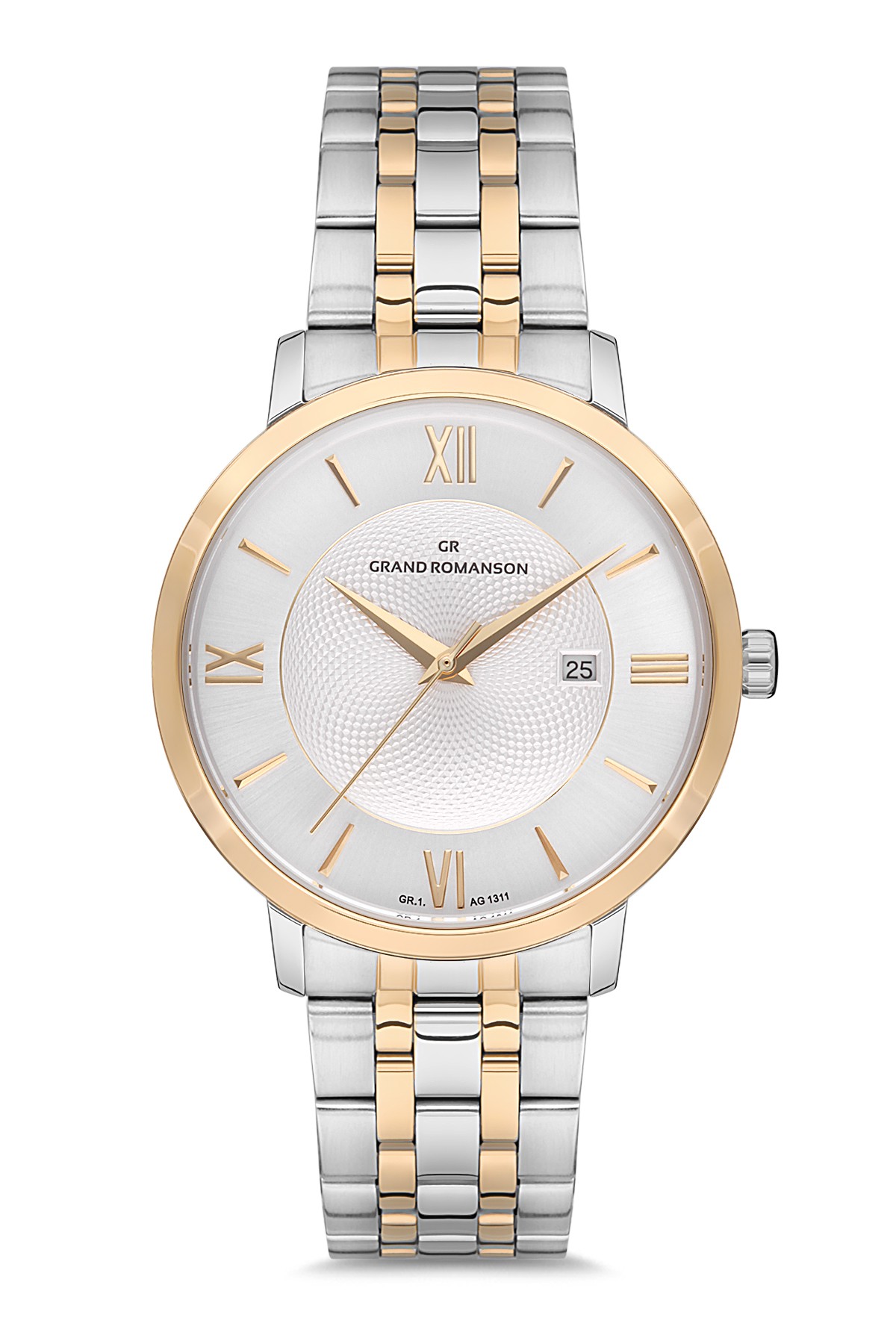 Erkek - Takvi̇mli̇ - Sari Beyaz - Gümüş - Paslanmaz Masi̇f Çeli̇k - 3 Atm - Sertleşti̇ri̇lmi̇ş Mi̇neral Cam - Grand Romanson - 42