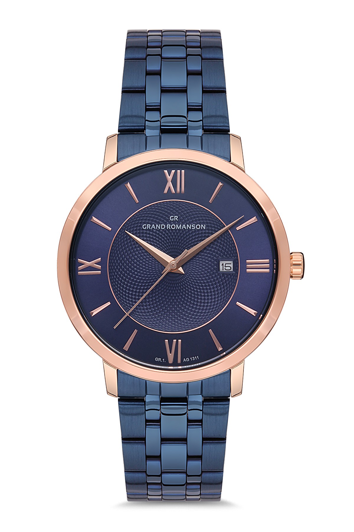 Erkek - Takvi̇mli̇ - Rose Mavi̇ - Mavi̇ - Paslanmaz Masi̇f Çeli̇k - 3 Atm - Sertleşti̇ri̇lmi̇ş Mi̇neral Cam - Grand Romanson - 42
