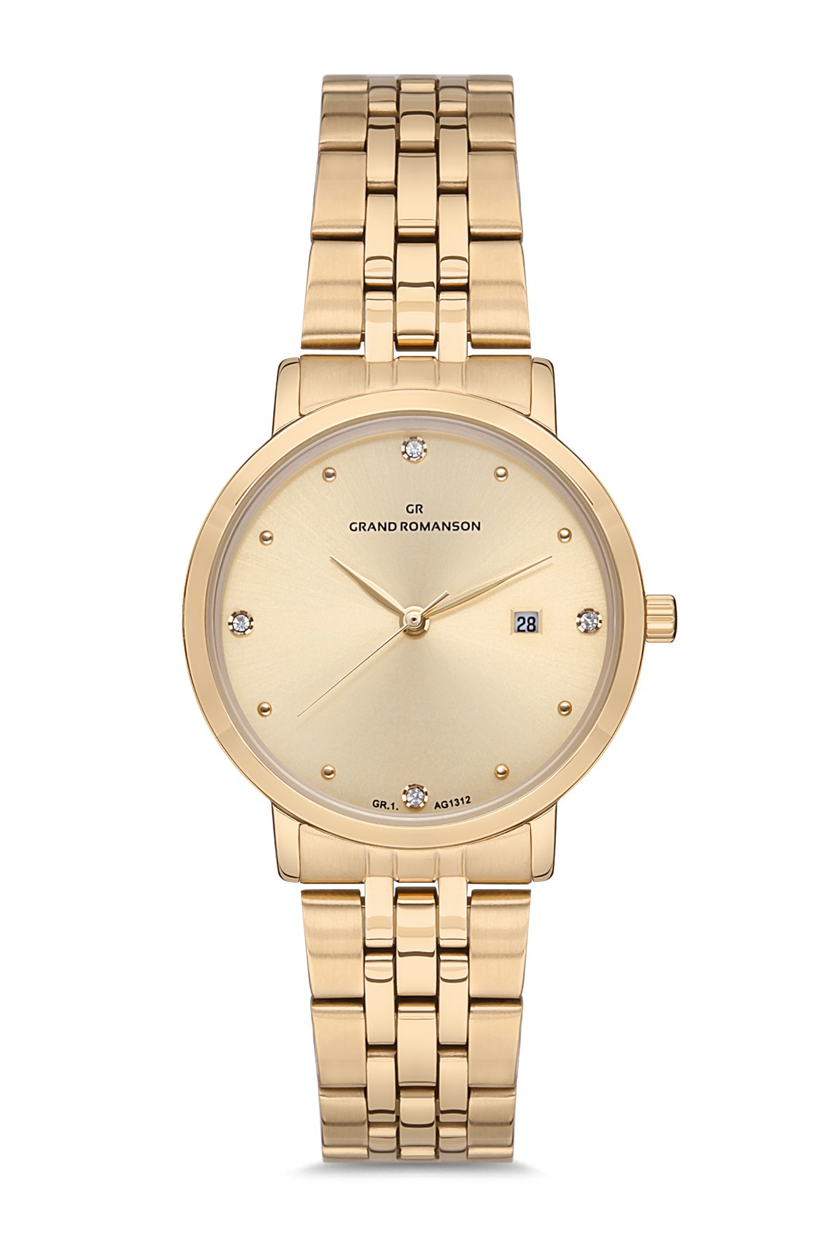 Kadın - Takvi̇mli̇ - Sari - Sari - Paslanmaz Masi̇f Çeli̇k - 3 Atm - Sertleşti̇ri̇lmi̇ş Mi̇neral Cam - Grand Romanson - 32
