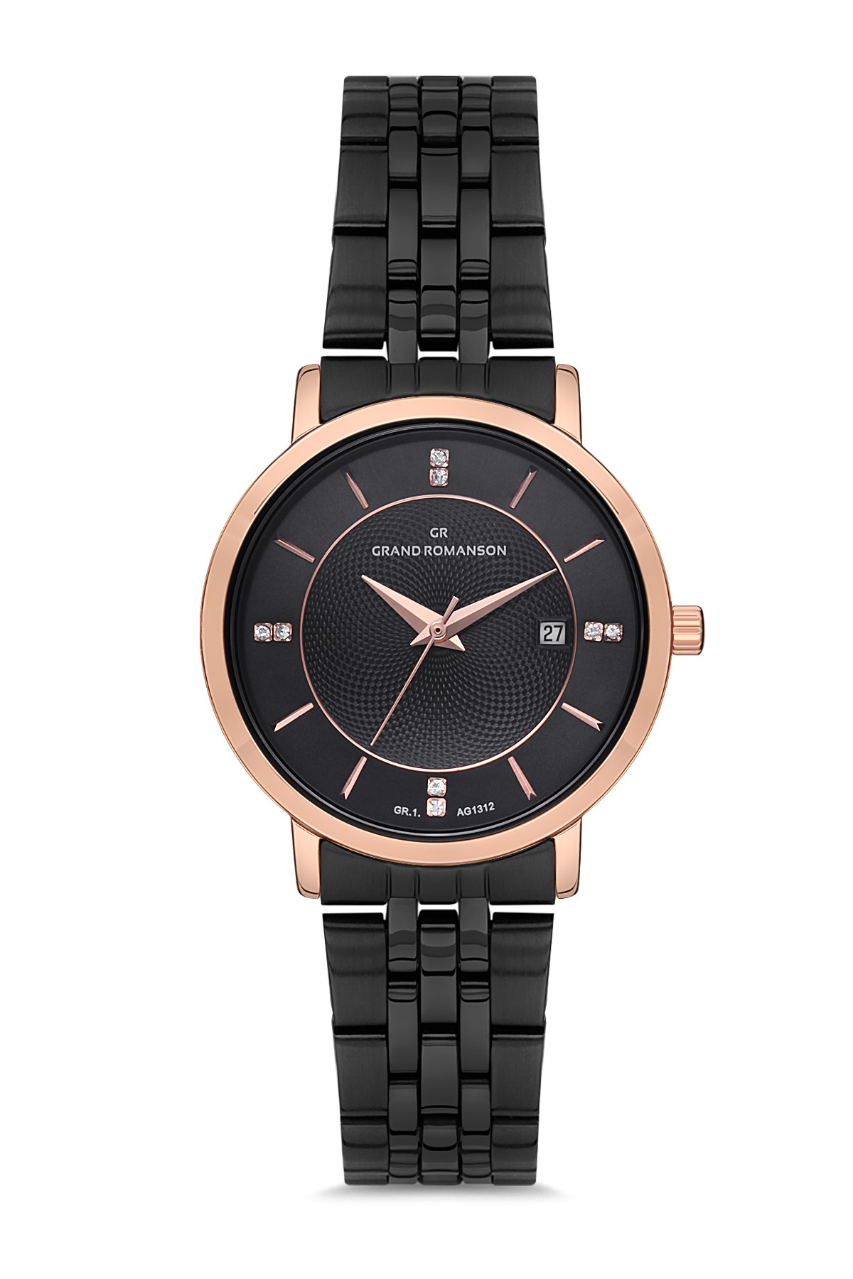 Kadın - Takvi̇mli̇ - Rose Si̇yah - Si̇yah - Paslanmaz Masi̇f Çeli̇k - 3 Atm - Sertleşti̇ri̇lmi̇ş Mi̇neral Cam - Grand Romanson - 32