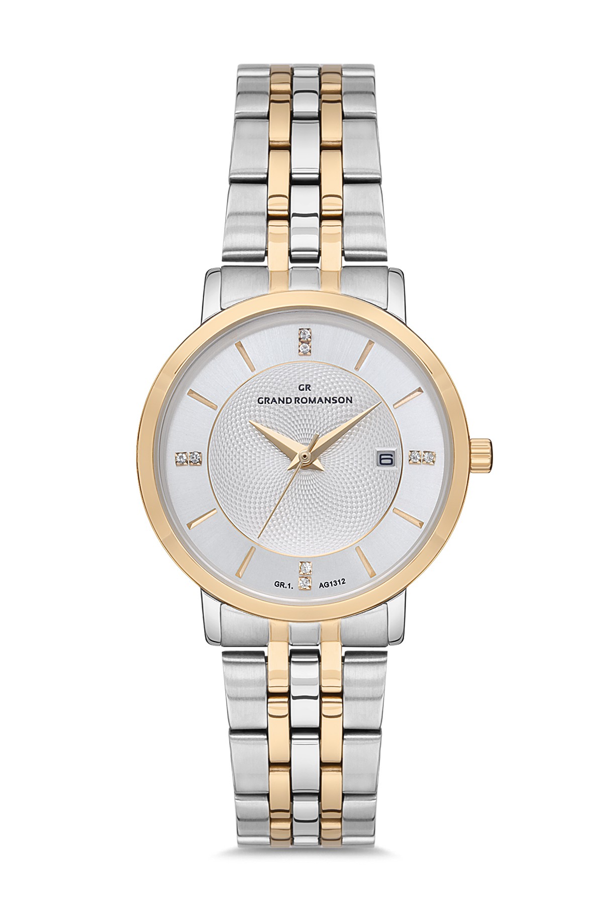 Kadın - Takvi̇mli̇ - Sari Beyaz - Gümüş - Paslanmaz Masi̇f Çeli̇k - 3 Atm - Sertleşti̇ri̇lmi̇ş Mi̇neral Cam - Grand Romanson - 32