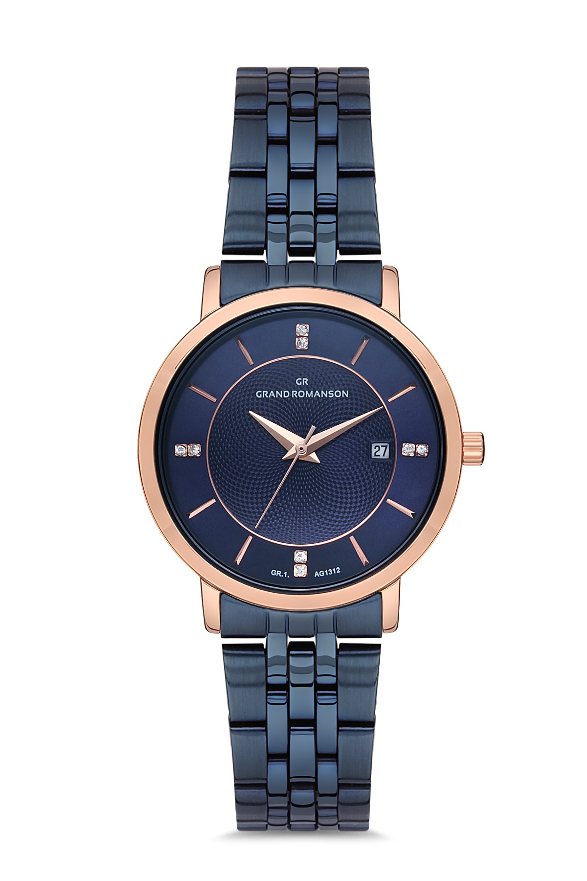 Kadın - Takvi̇mli̇ - Rose Mavi̇ - Mavi̇ - Paslanmaz Masi̇f Çeli̇k - 3 Atm - Sertleşti̇ri̇lmi̇ş Mi̇neral Cam - Grand Romanson - 32