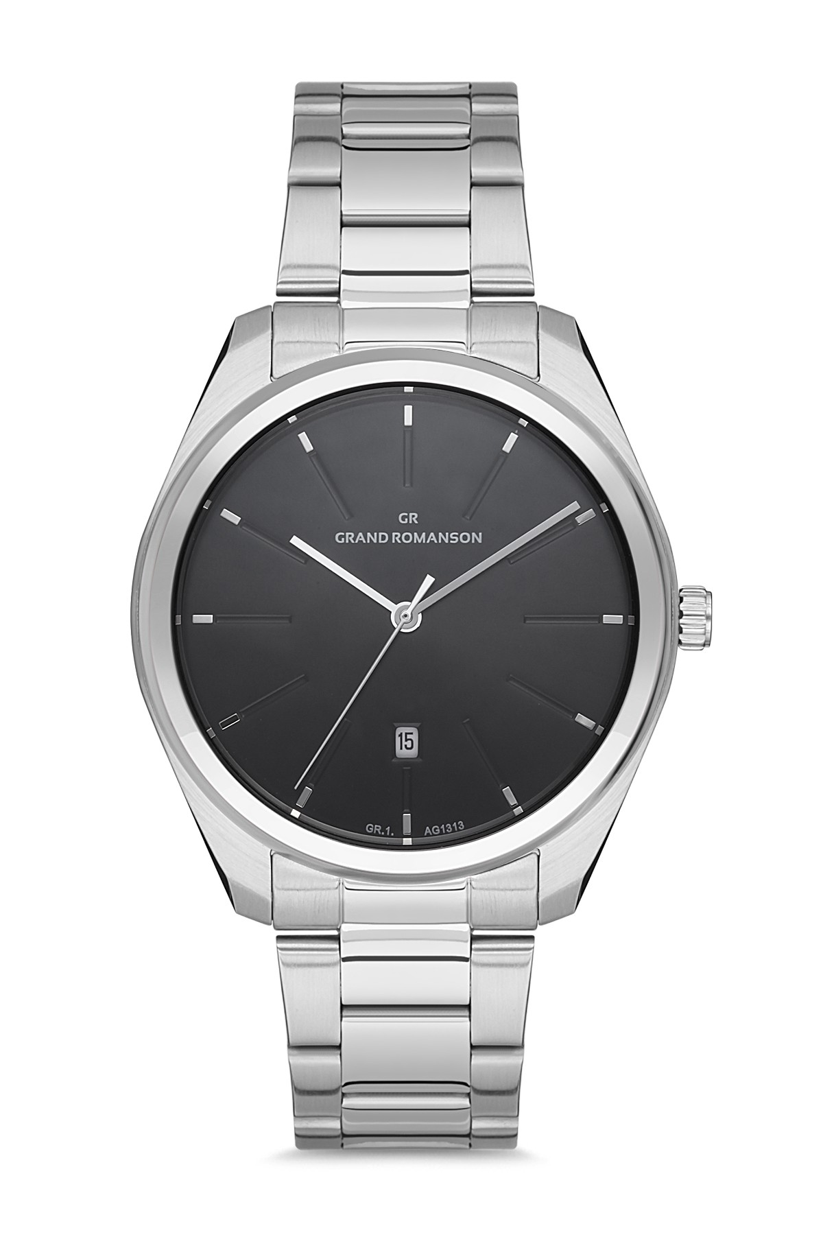 Erkek - Takvi̇mli̇ - Gümüş - Si̇yah - Paslanmaz Masi̇f Çeli̇k - 3 Atm - Sertleşti̇ri̇lmi̇ş Mi̇neral Cam - Grand Romanson - 42