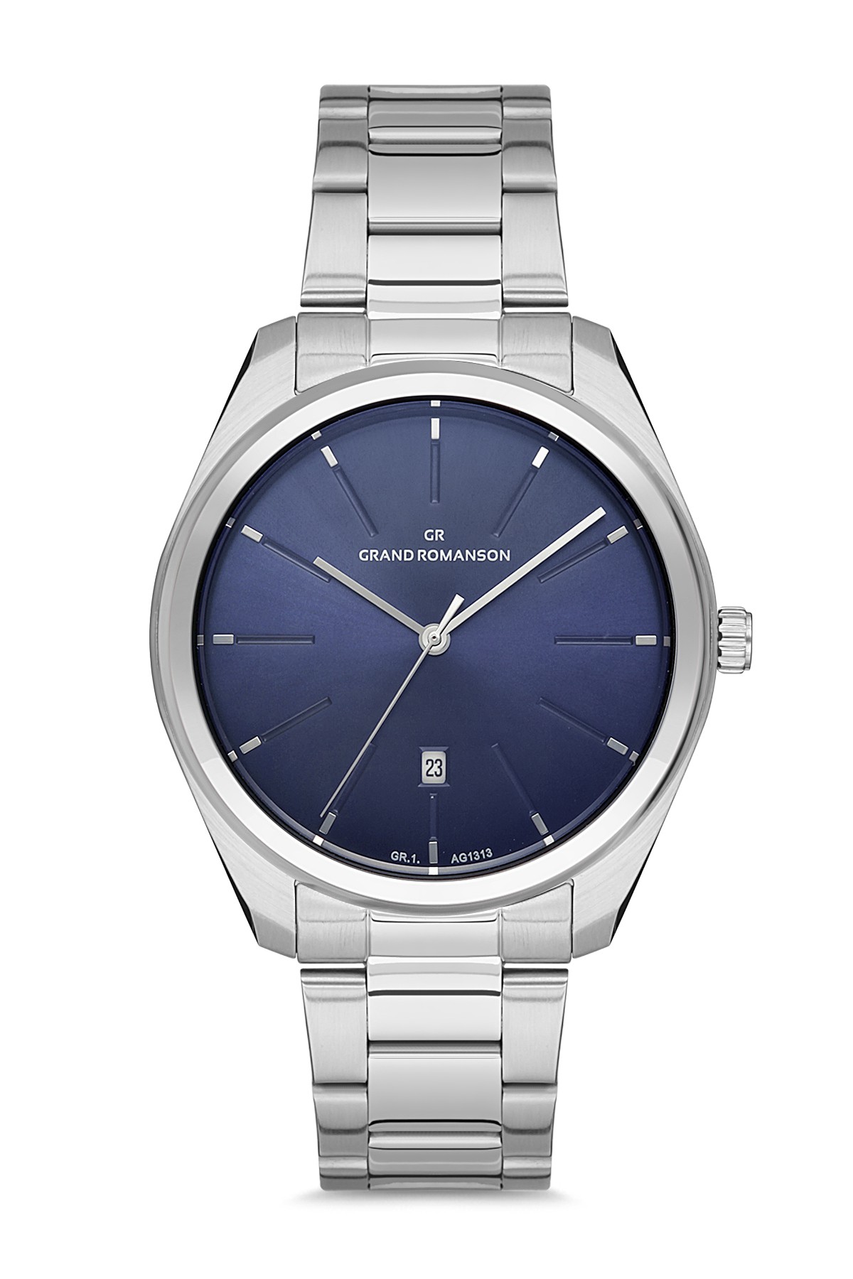 Erkek - Takvi̇mli̇ - Gümüş - Mavi̇ - Paslanmaz Masi̇f Çeli̇k - 3 Atm - Sertleşti̇ri̇lmi̇ş Mi̇neral Cam - Grand Romanson - 42