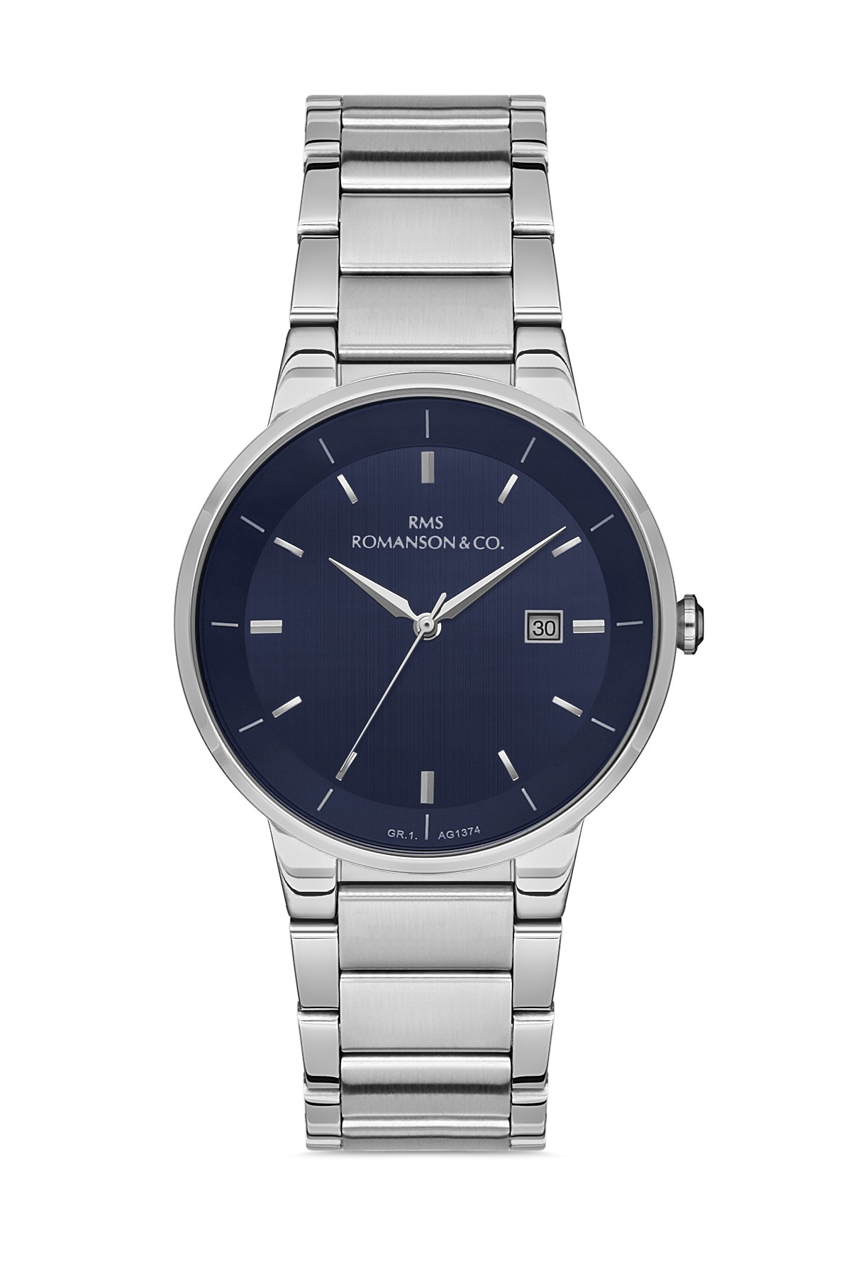 Erkek - Takvi̇mli̇ - Gümüş - Mavi̇ - Paslanmaz Masi̇f Çeli̇k - 3 Atm - Sertleşti̇ri̇lmi̇ş Mi̇neral Cam - Grand Romanson