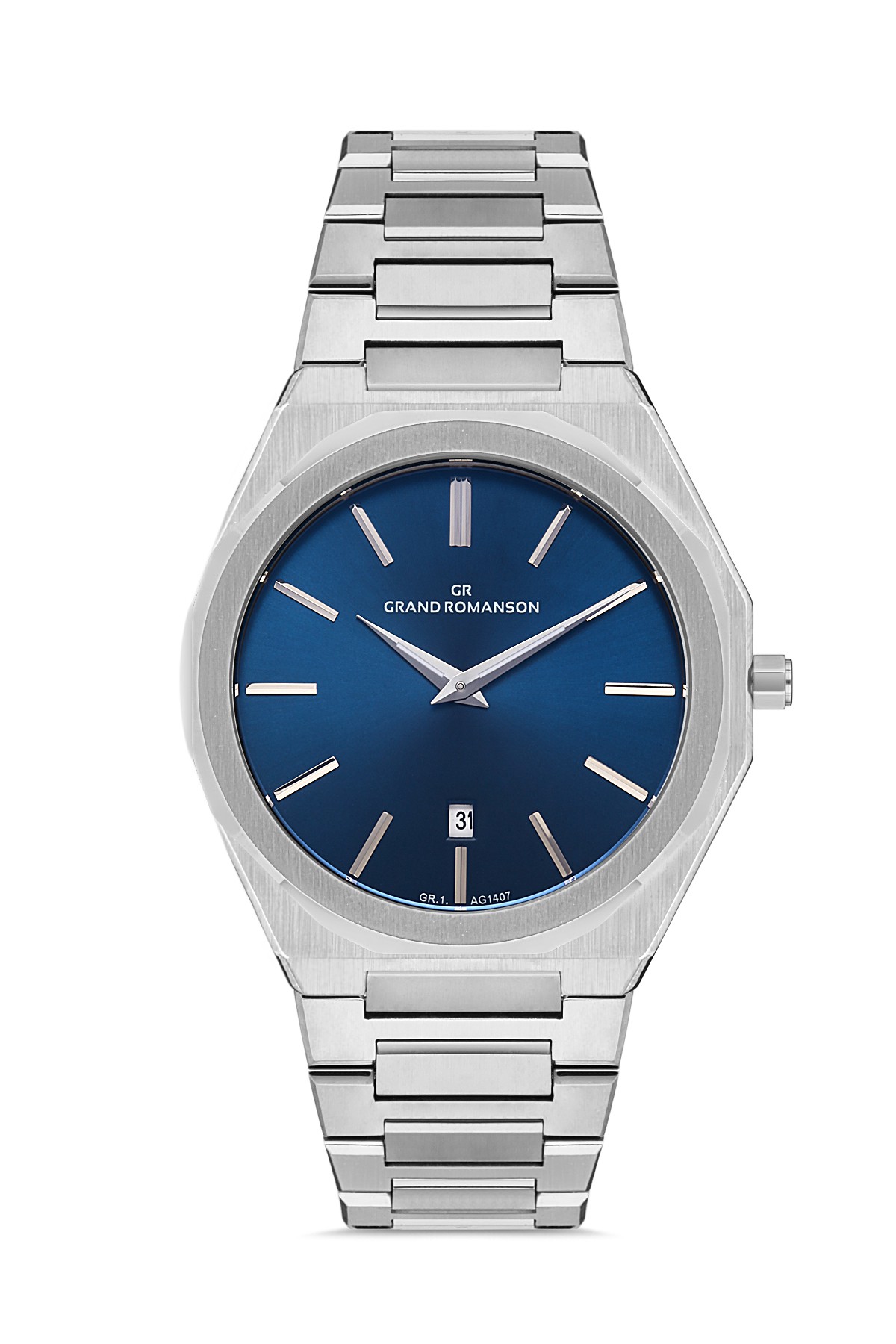 Erkek - Takvi̇mli̇ - Gümüş - Mavi̇ - Paslanmaz Masi̇f Çeli̇k - 3 Atm - Sertleşti̇ri̇lmi̇ş Mi̇neral Cam - Grand Romanson