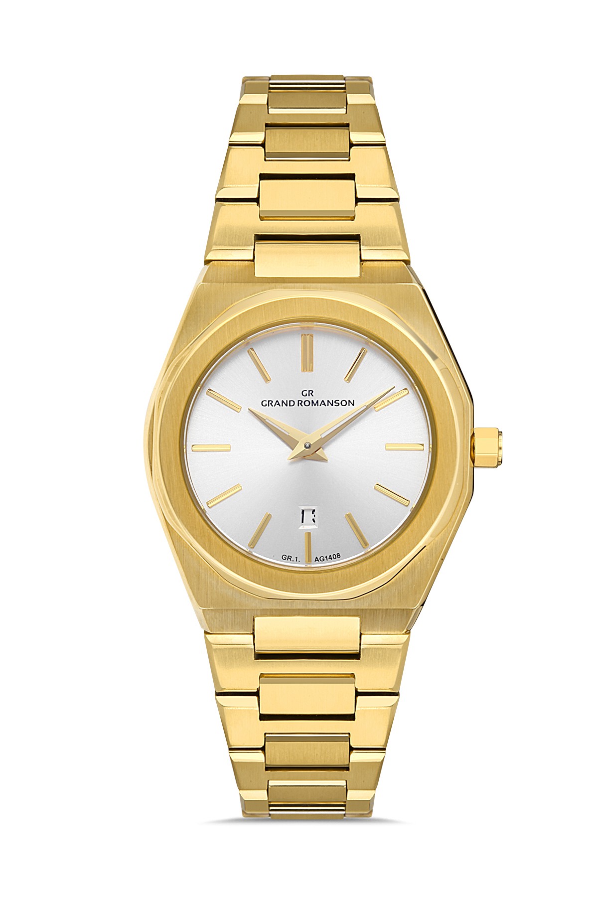Kadın - Takvi̇mli̇ - Sari - Gümüş - Paslanmaz Masi̇f Çeli̇k - 3 Atm - Sertleşti̇ri̇lmi̇ş Mi̇neral Cam - Grand Romanson