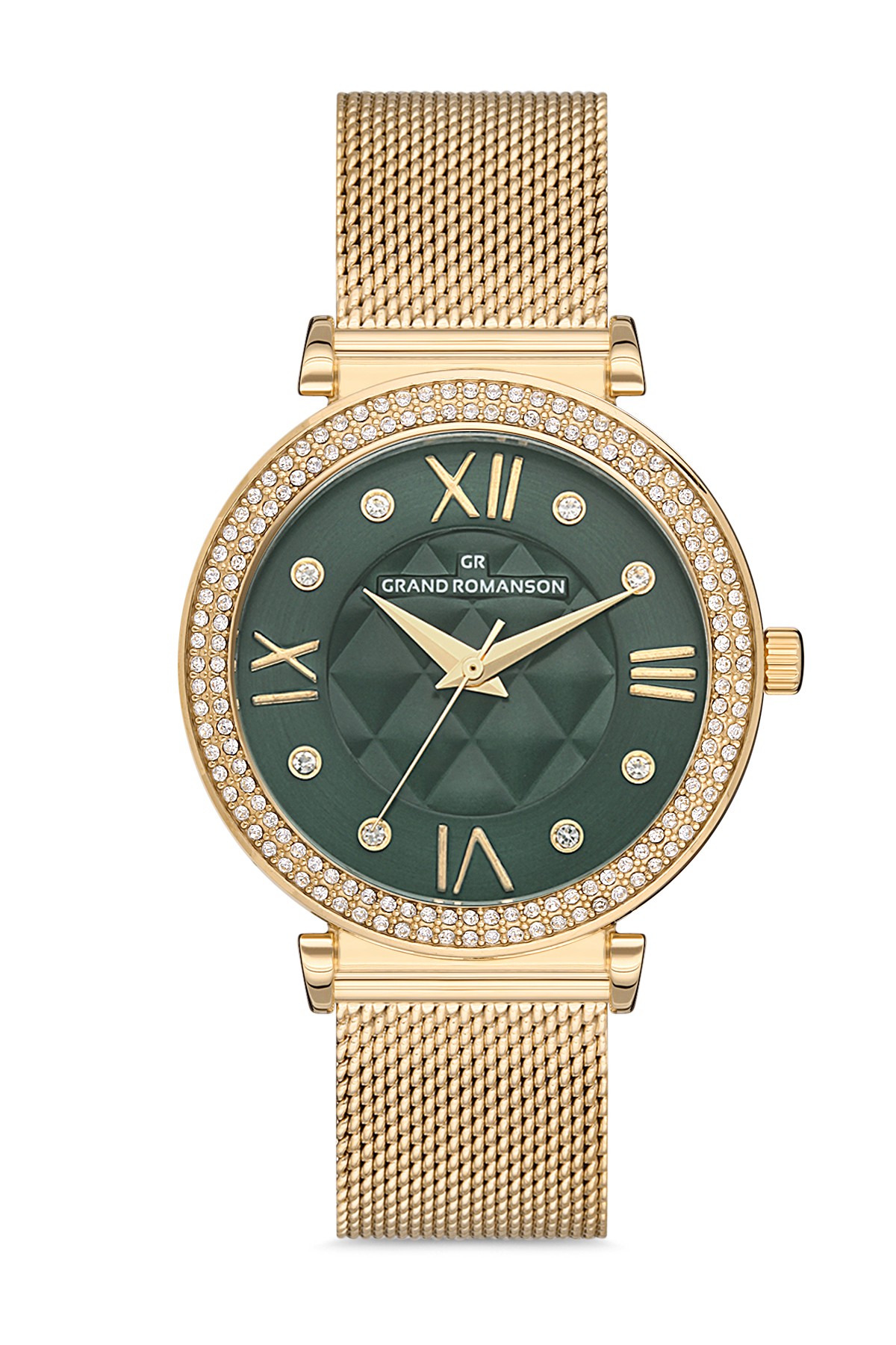 Kadın - Taşli - Sari - Yeşi̇l - Çeli̇k Örme Kordon - 3 Atm - Sertleşti̇ri̇lmi̇ş Mi̇neral Cam - Grand Romanson