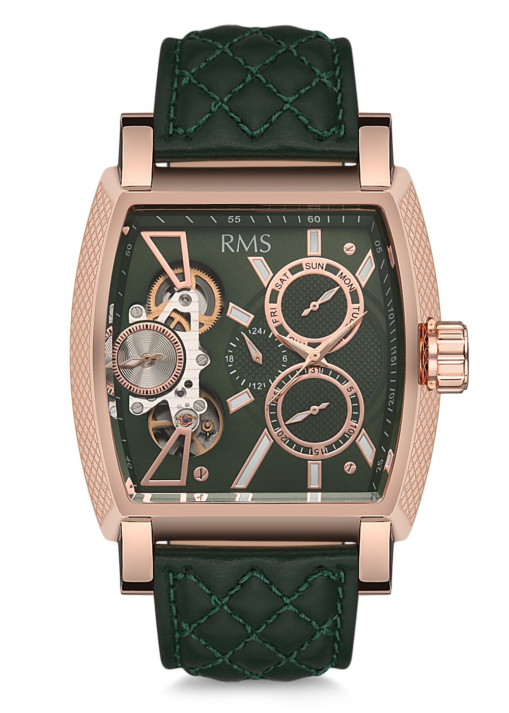 Erkek - Kronometre - Rose - Yeşi̇l - Doğal Deri̇ Kordon - Yeşi̇l - 3 Atm - Grand Romanson