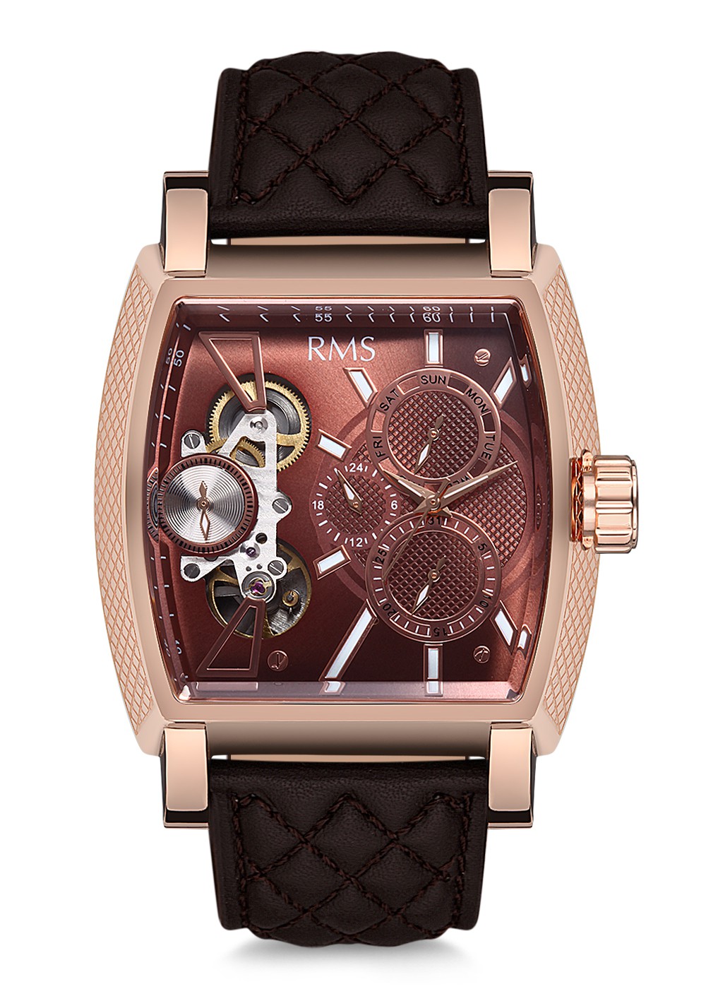 Erkek - Kronometre - Rose - Kahverengi̇ - Doğal Deri̇ Kordon - Kahverengi̇ - 3 Atm - Sertleşti̇ri̇lmi̇ş Mi̇neral Cam - Grand Romanson