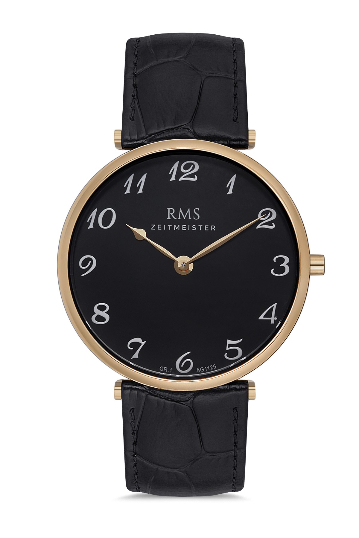 Erkek - Düz - Rose - Si̇yah - Doğal Deri̇ Kordon - Si̇yah - 3 Atm - Sertleşti̇ri̇lmi̇ş Mi̇neral Cam - Grand Romanson - 40
