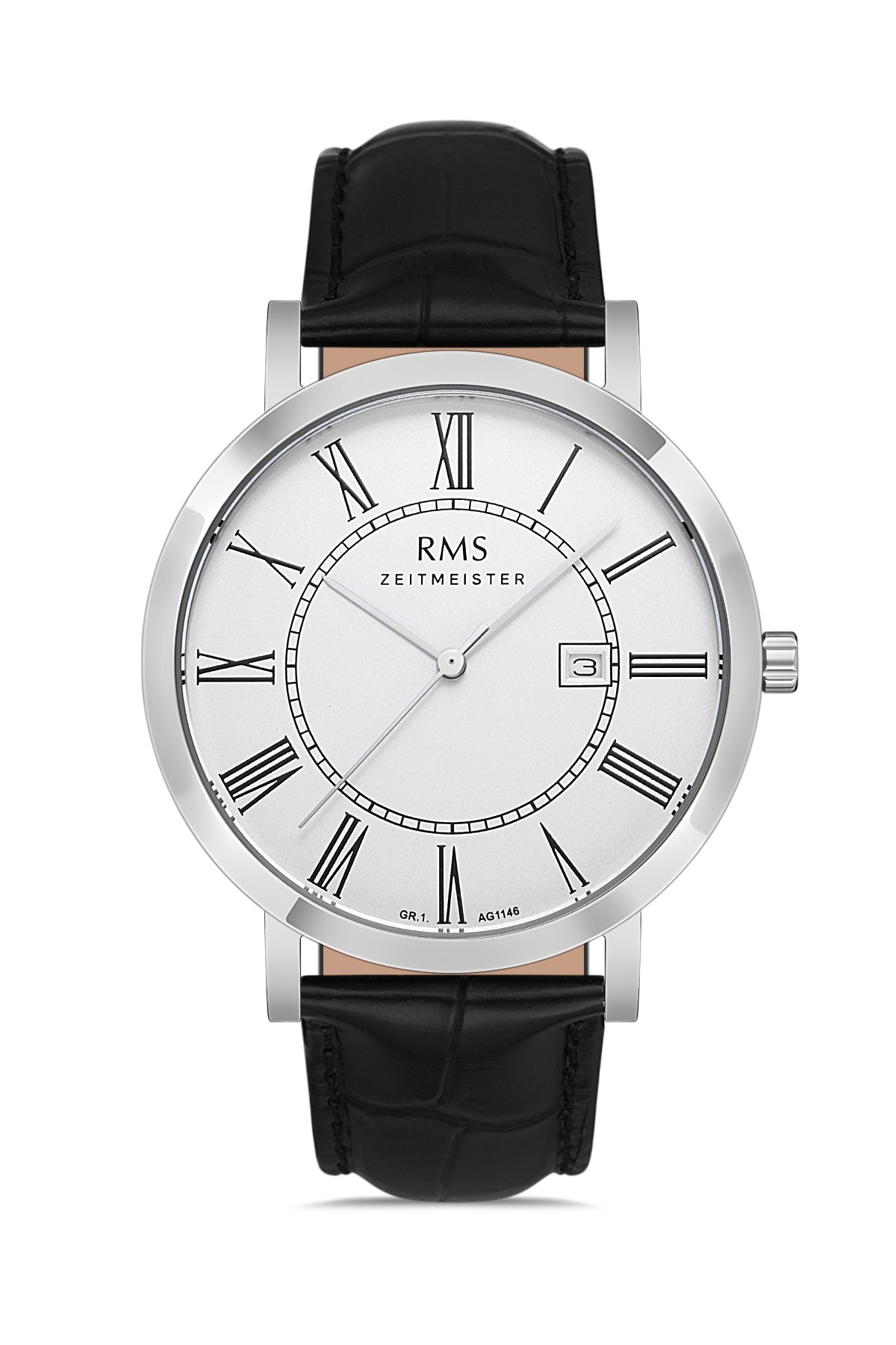 Erkek - Takvi̇mli̇ - Gümüş - Gümüş - Doğal Deri̇ Kordon - Si̇yah - 3 Atm - Sertleşti̇ri̇lmi̇ş Mi̇neral Cam - Grand Romanson